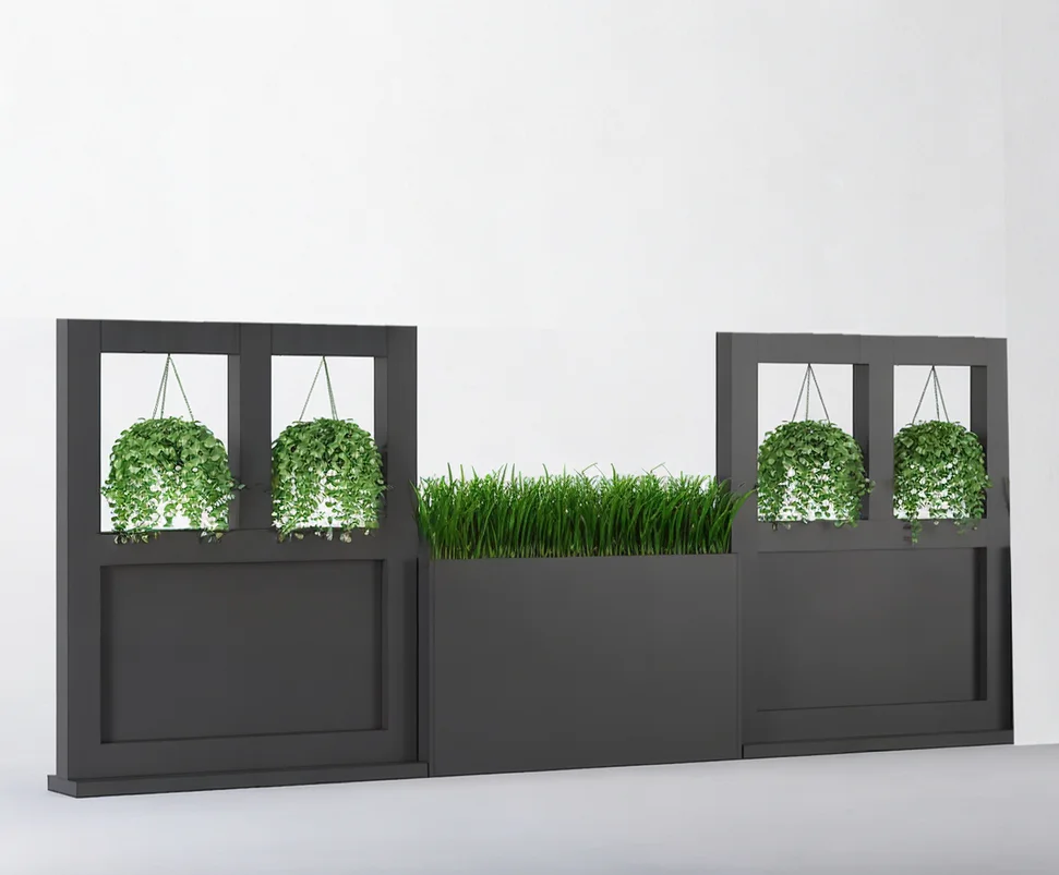 Задачу зонирования летней веранды кафе можно решить с помощью установки деревянных ограждений и кашпо-перегородок. Такое сочетание декоративных перегородок и цветочниц можно устанавливать на платформе, на ступеньках, оформить входную группу. Плантеры создадут уютные зоны на летней веранде. Растения создадут тень и создадут приватную обстановку для посетителей кафе. Все модули серии перегородок GRANDE можно комбинировать между собой. Цвет подбирается индивидуально.