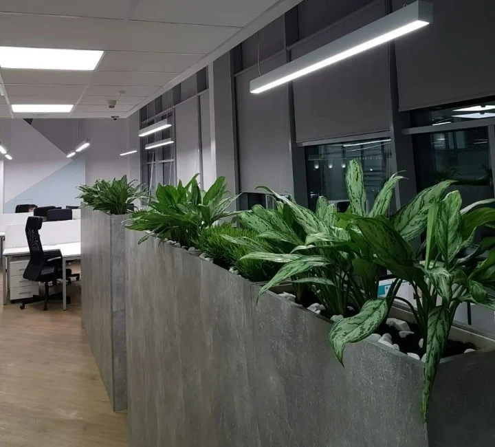 Зонирование с помощью напольных кашпо – современный способ разграничения пространства. Кашпо-перегородки меняют пространство любого помещения – делают его более комфортным, экологичным, уютным. Кашпо для офиса в качестве перегородки впишутся в пространство любого стиля, а широкая цветовая гамма позволит подобрать именно Ваш вариант.