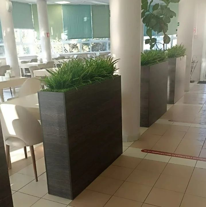 Дивайдеры и плантеры для офиса помогают визуально разделить офис на зоны и создать психологический комфорт при работе в едином информационном поле. Разные типы кашпо-перегородок (кашпо-перегородка, тумба с кашпо, мобильная перегородка-кашпо) подарит свободу в выборе под Ваши задачи.