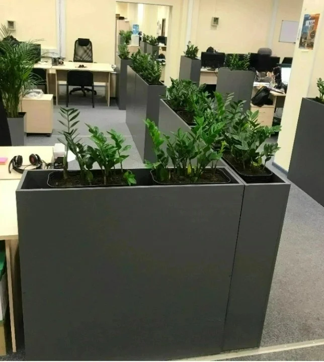 Дивайдеры и плантеры для офиса помогают визуально разделить офис на зоны и создать психологический комфорт при работе в едином информационном поле. Разные типы кашпо-перегородок (кашпо-перегородка, тумба с кашпо, мобильная перегородка-кашпо) подарит свободу в выборе под Ваши задачи.
