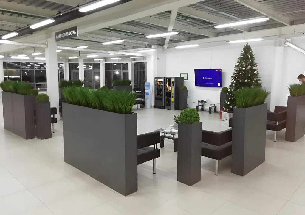Дивайдеры и плантеры для офиса помогают визуально разделить офис на зоны и создать психологический комфорт при работе в едином информационном поле. Разные типы кашпо-перегородок (кашпо-перегородка, тумба с кашпо, мобильная перегородка-кашпо) подарит свободу в выборе под Ваши задачи.