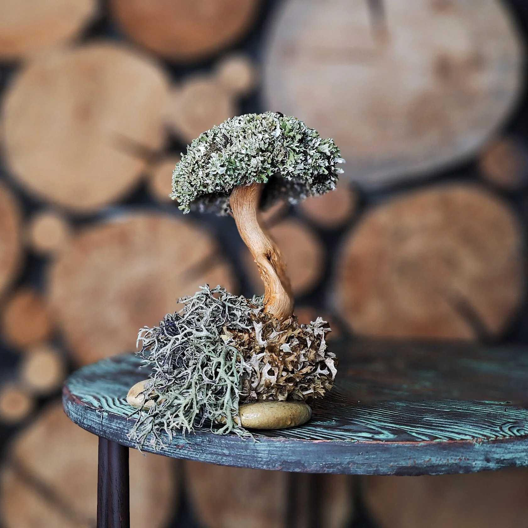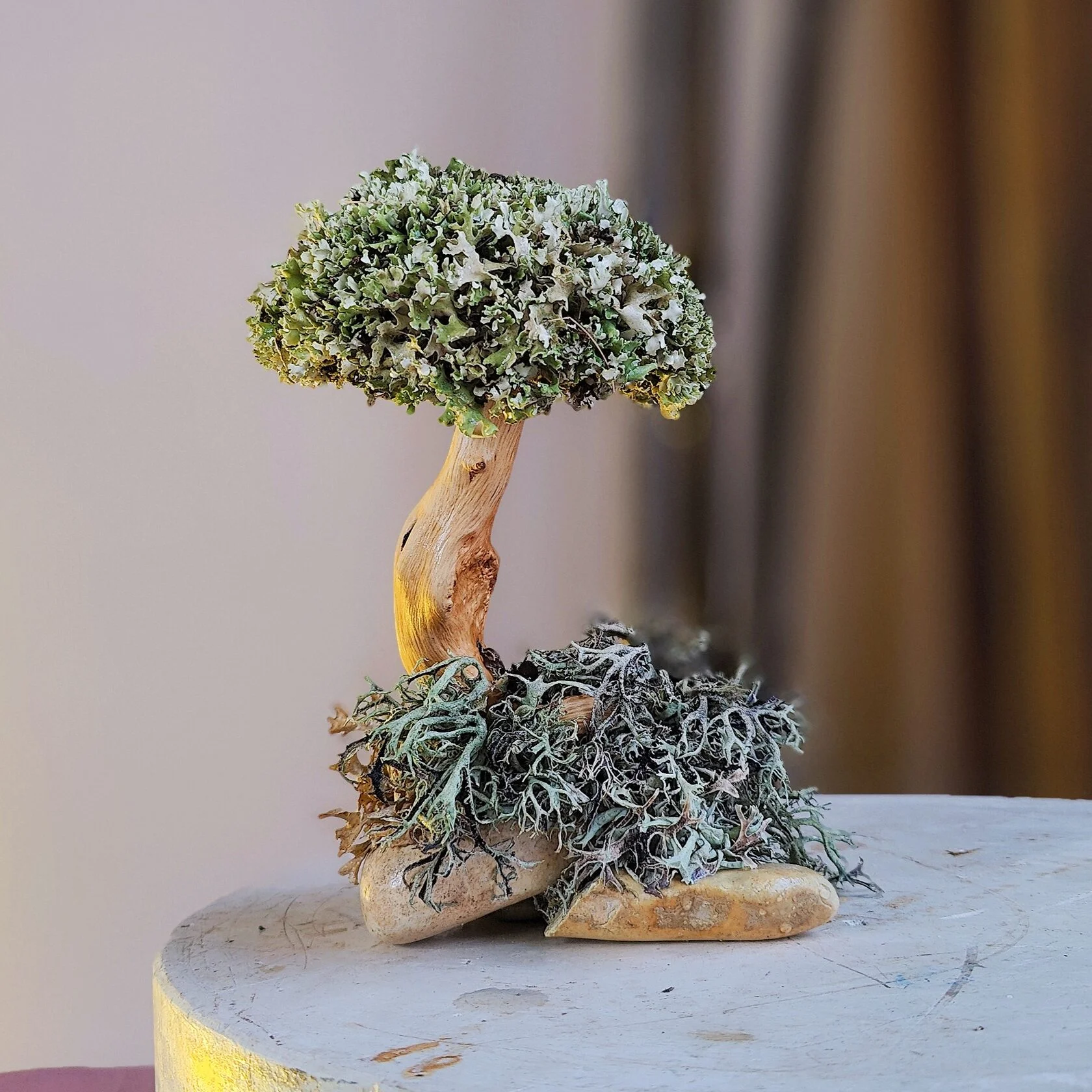 Представляем вашему вниманию великолепное деревце бонсай из исландского мха цетрарии – уникальное украшение для вашего интерьера! Каждый элемент из цетрарии тщательно подобран, чтобы подчеркнуть естественную красоту этого растения.