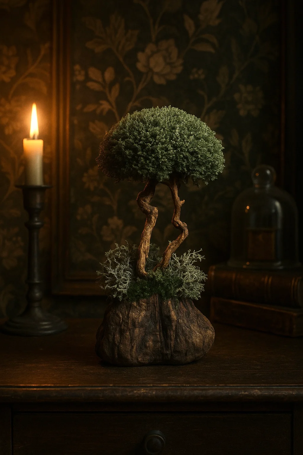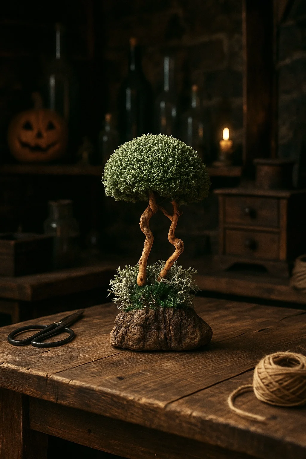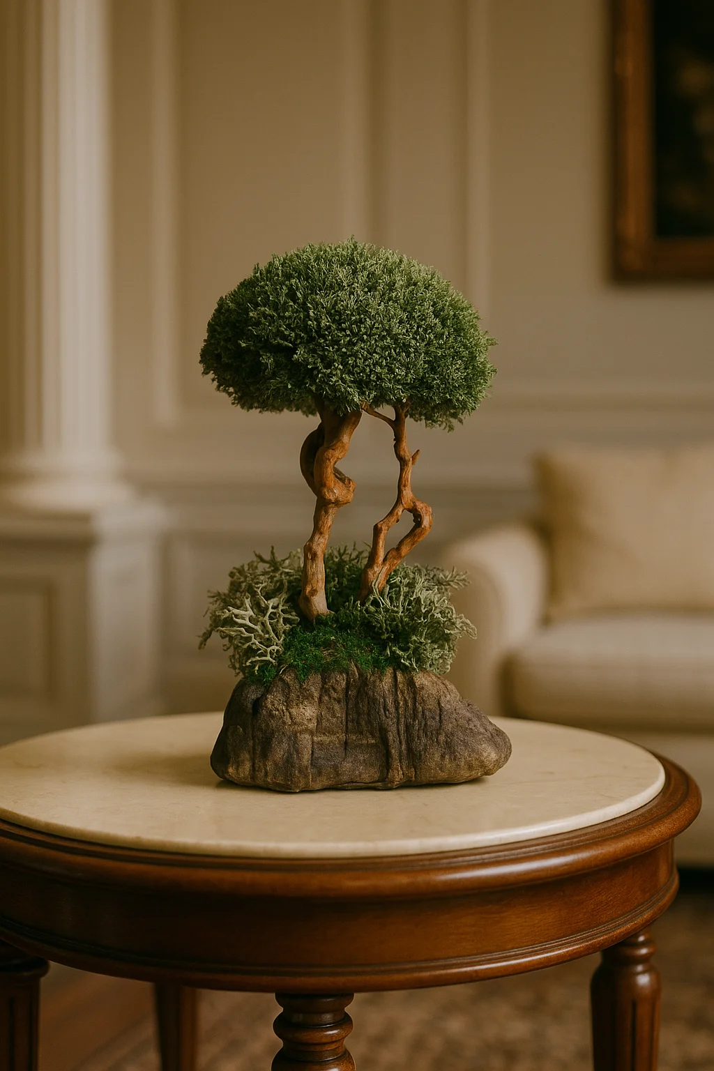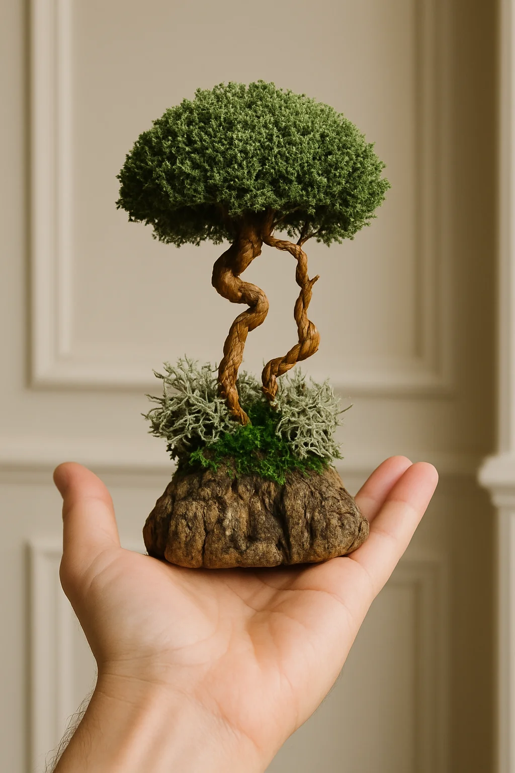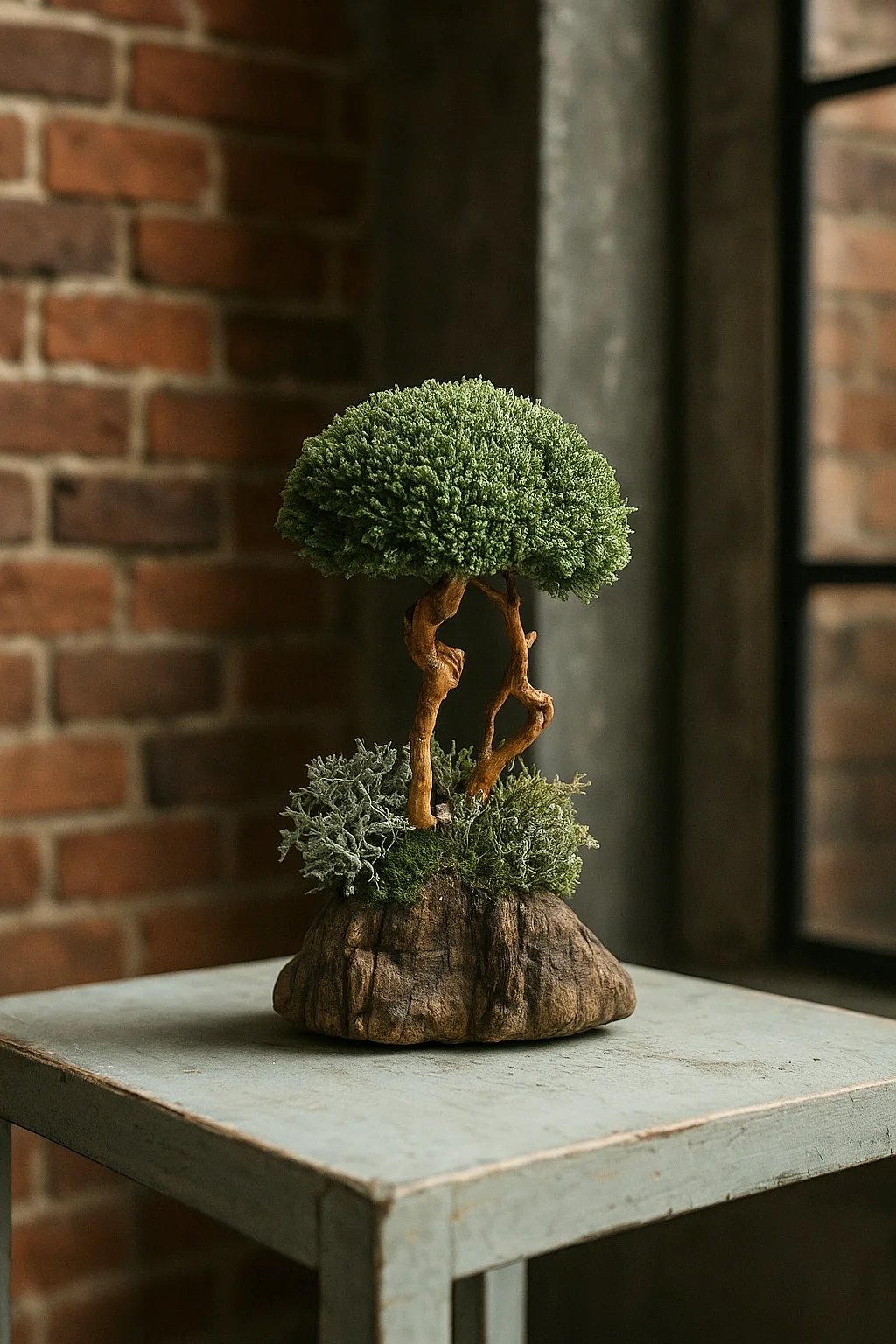- Бонсай с кроной из живой цетрарии станет изюминкой и подойдет для любого интерьера.