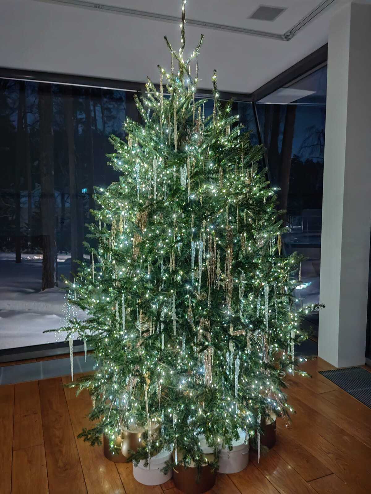 Ель «Хрусталь и золото» — это воплощение изобилия и счастья. Каждая её деталь излучает изысканность и праздничное сияние.