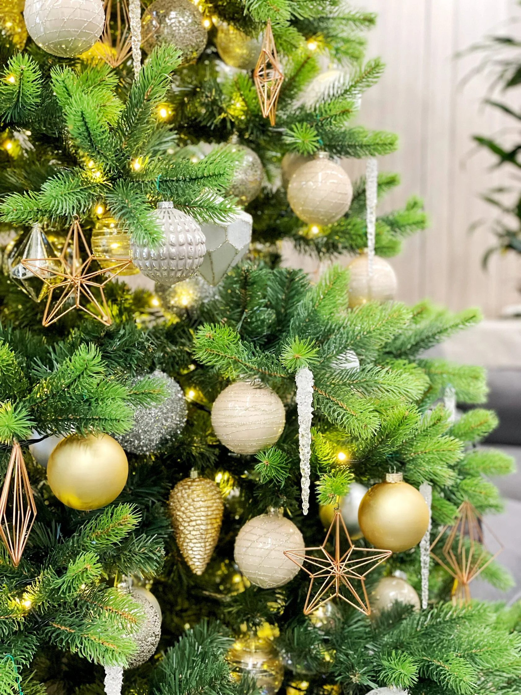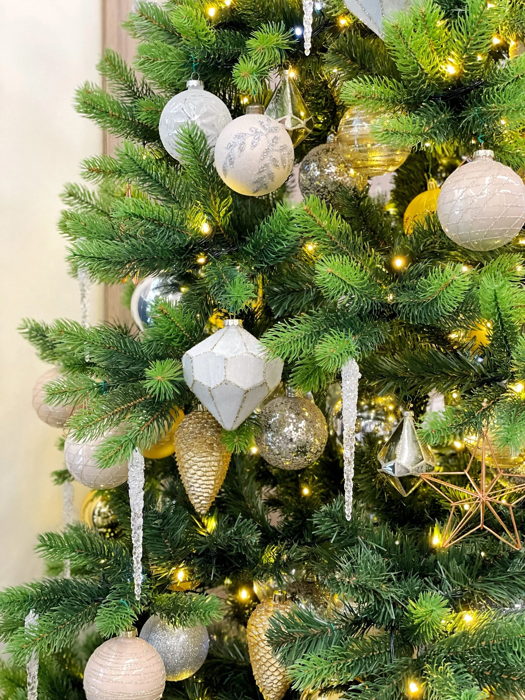 ✔ Комплект игрушек разных диаметров: 50% стекло / 50% пластик