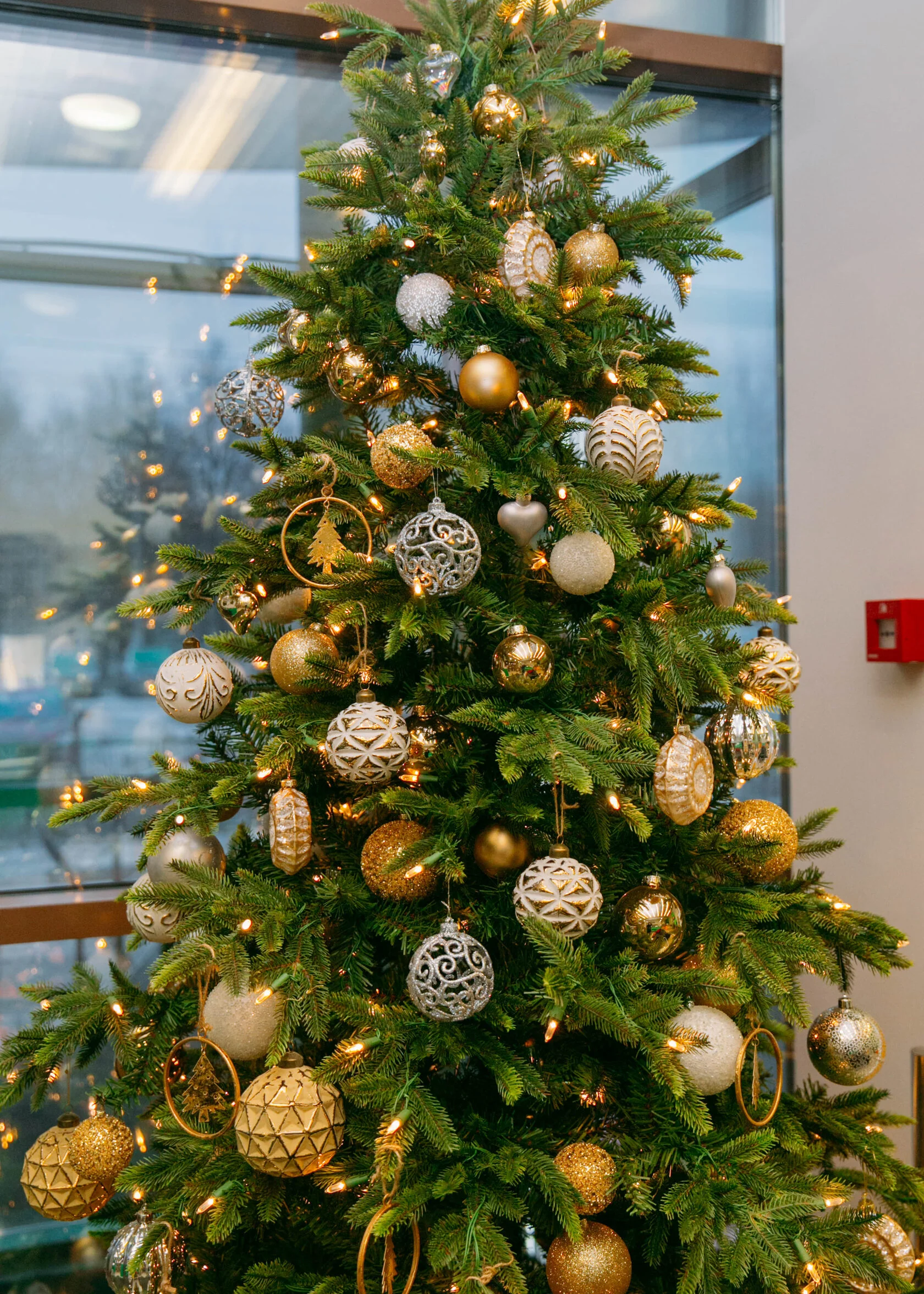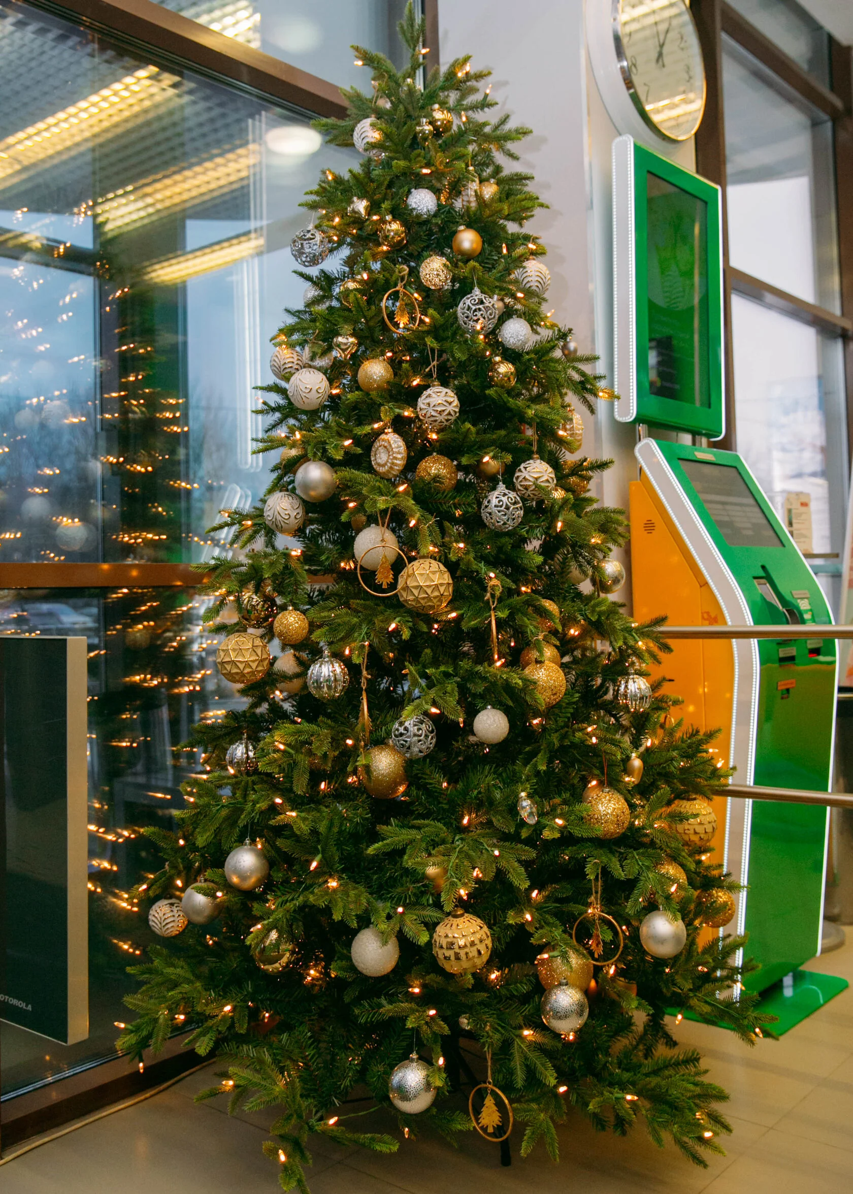 Эта ель — воплощение роскоши и изысканности. Ее литые ветви с мягким светом встроенной гирлянды создают ощущение живого дерева. Золотые акценты и стильные игрушки наполняют интерьер сиянием и торжественностью. Такая композиция станет сердцем праздника, даря вашему дому особую новогоднюю атмосферу.