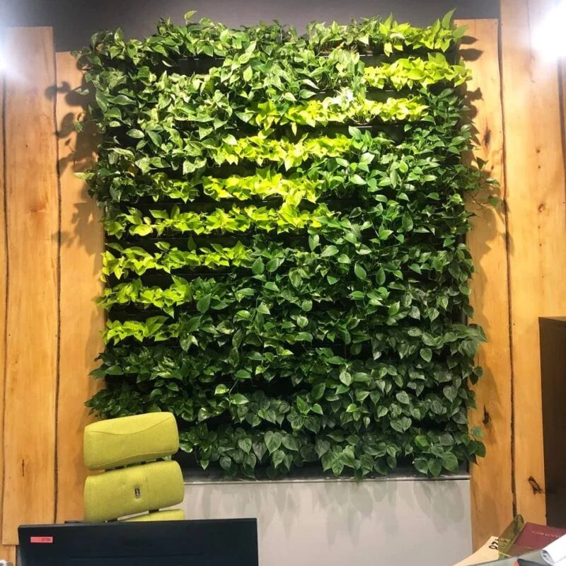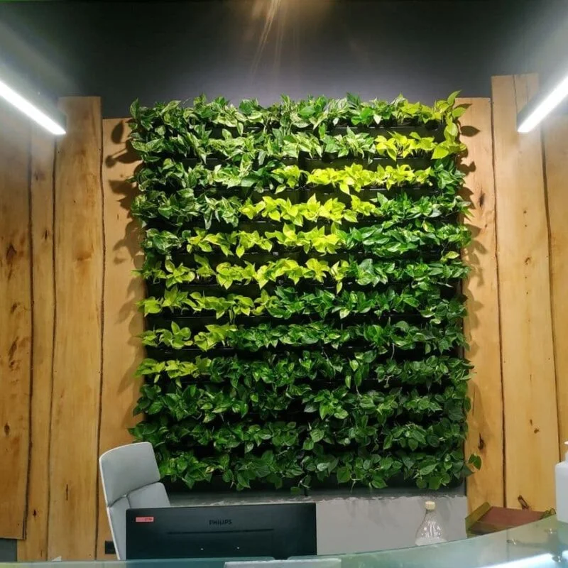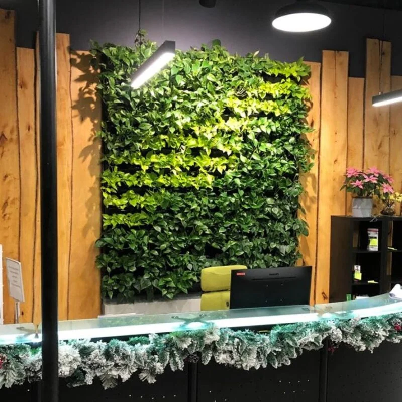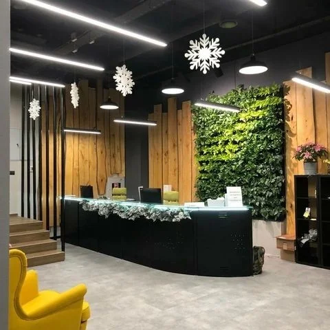 Фитостена на ресепшене компании не только украшает пространство, но и формирует положительный имидж, создавая уютную атмосферу для деловых встреч и общения с клиентами.