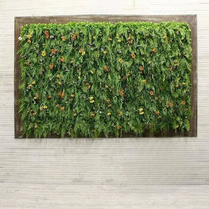 Фитостена, созданная из папоротника, космеи и растений премиального качества, образует гармоничную композицию, которая станет ярким акцентом в любом интерьере, будь то жилое или коммерческое помещение.