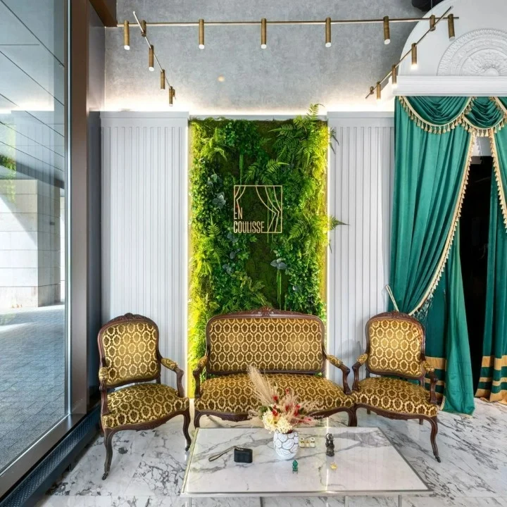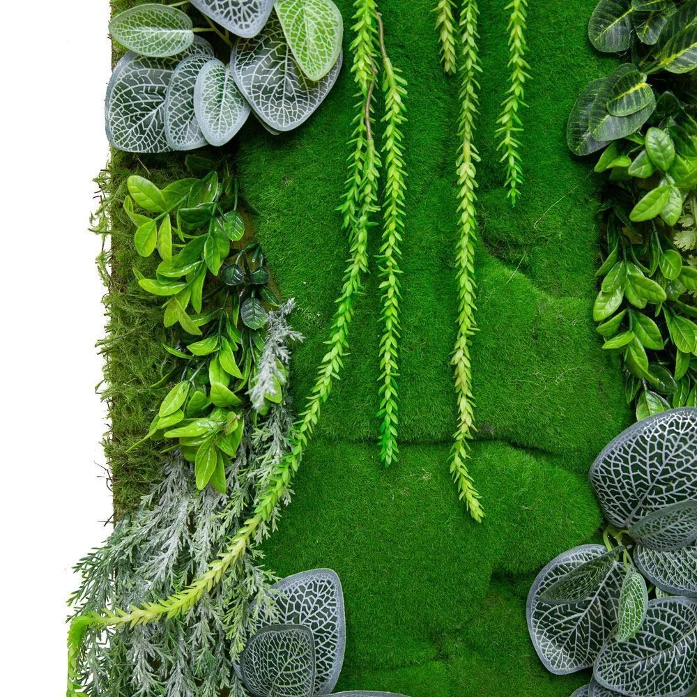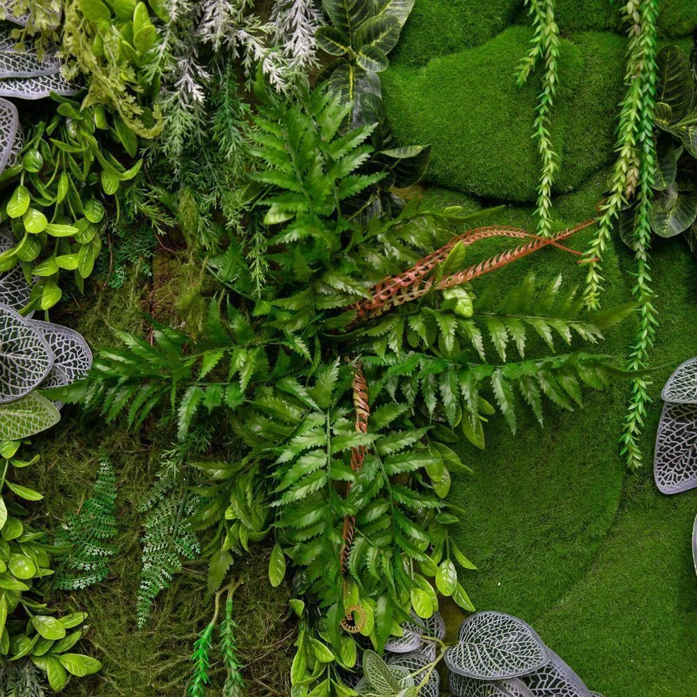 Фитостена, созданная из различных видов растений и зеленых камней премиального качества, образует гармоничную композицию, которая станет ярким акцентом в любом интерьере, будь то жилое или коммерческое помещение.