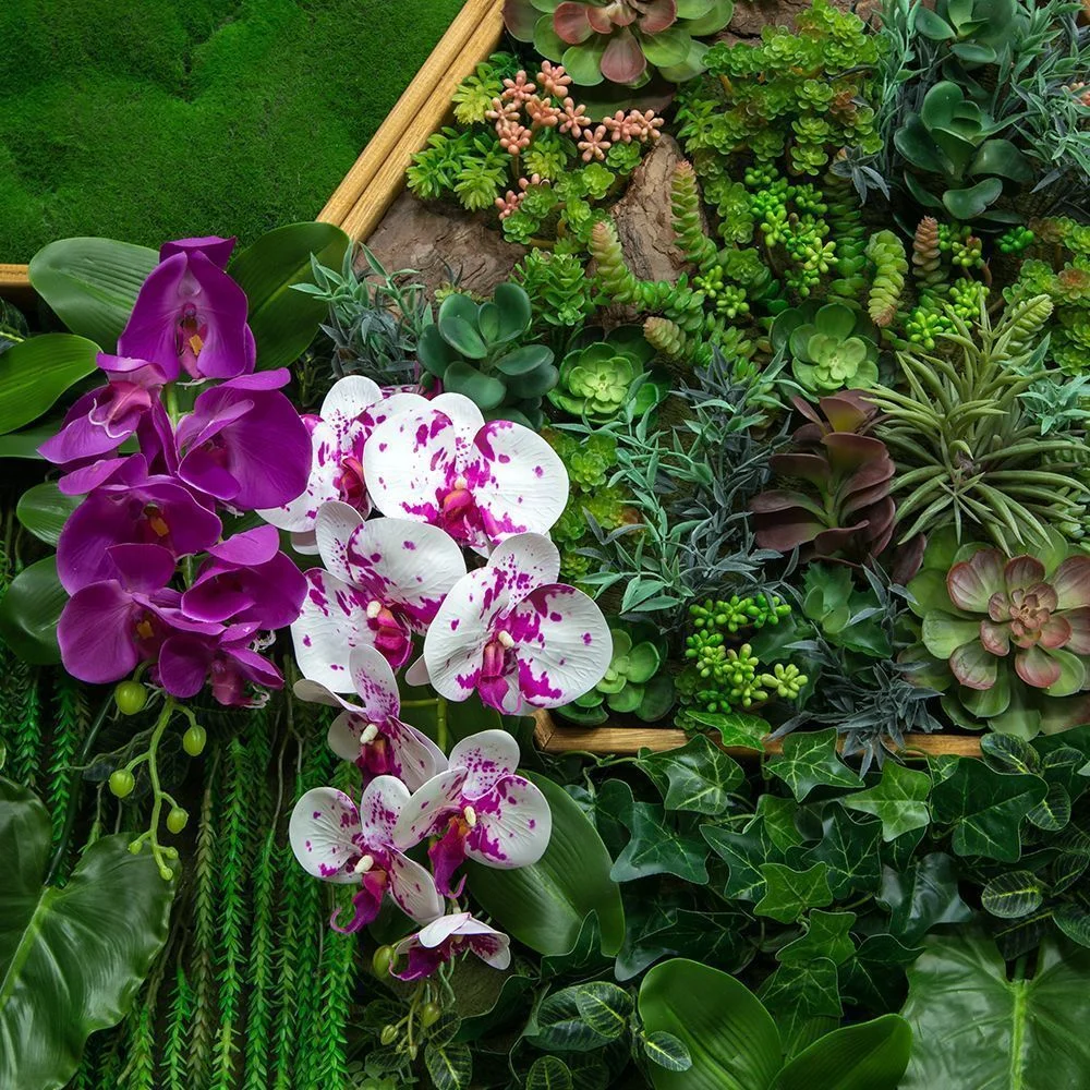 Фитостена, созданная из папоротника, разных видов мха и суккулентов, орхидей премиального качества, образует гармоничную композицию, которая станет ярким акцентом в любом интерьере, будь то жилое или коммерческое помещение.