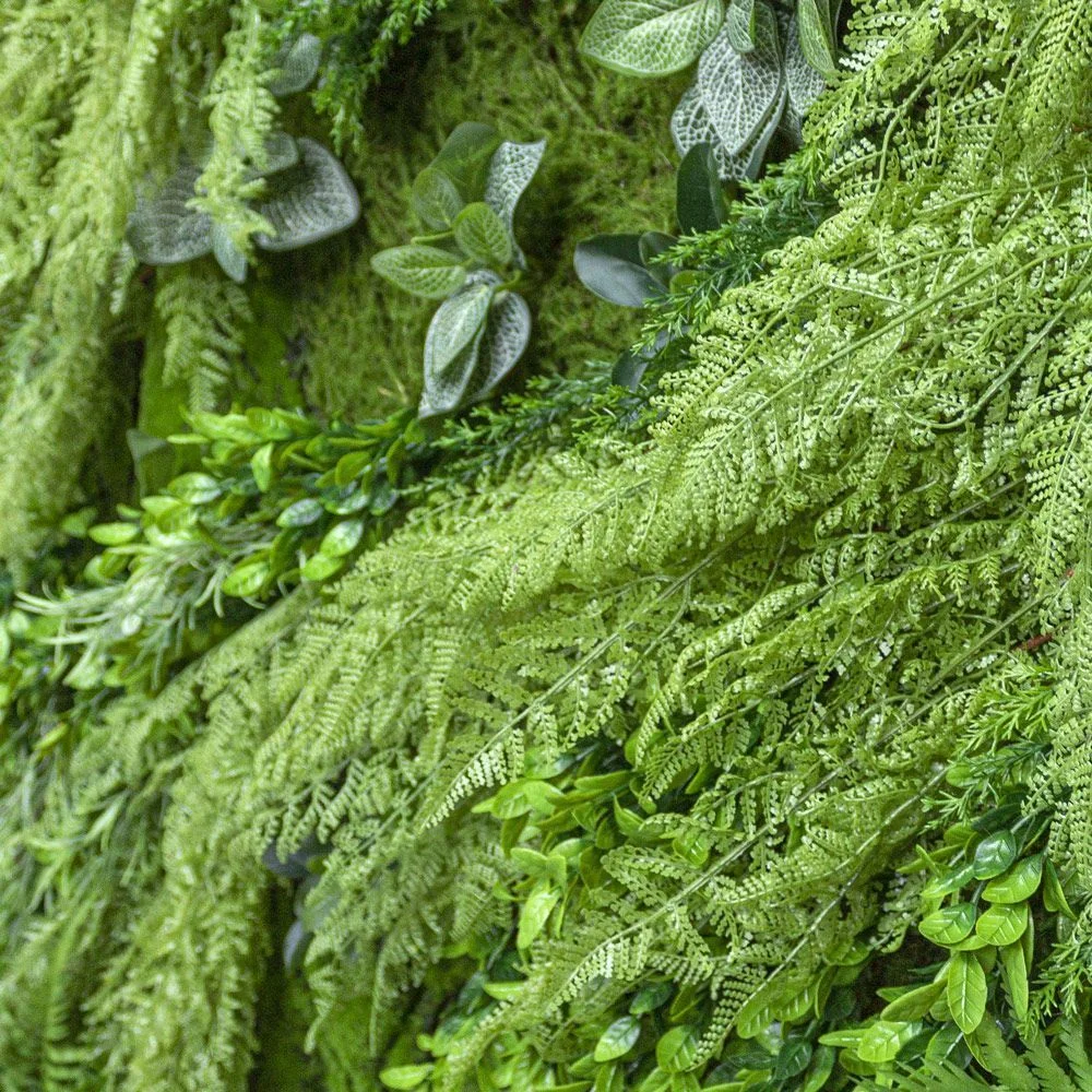 Фитостена, созданная из папоротника, разных видов мха и фиттонии премиального качества, образует гармоничную композицию, которая станет ярким акцентом в любом интерьере, будь то жилое или коммерческое помещение.
