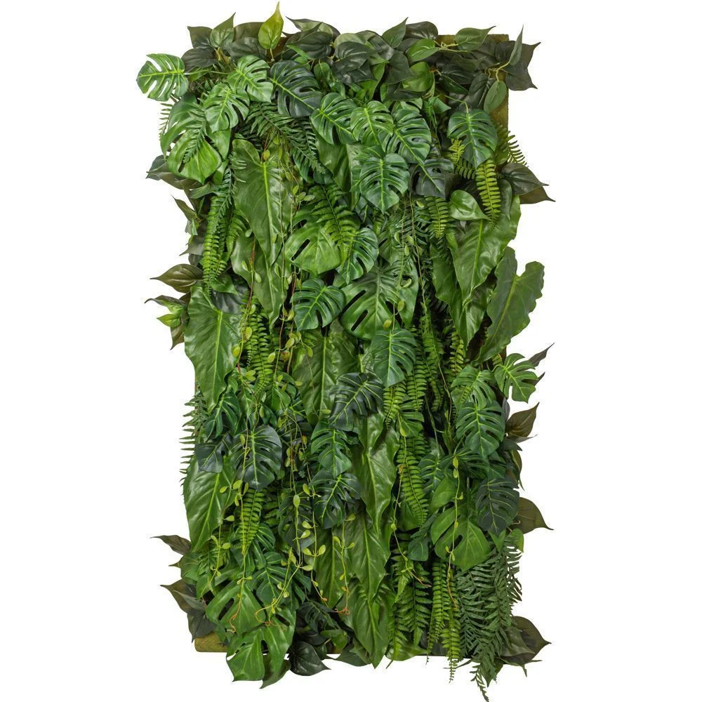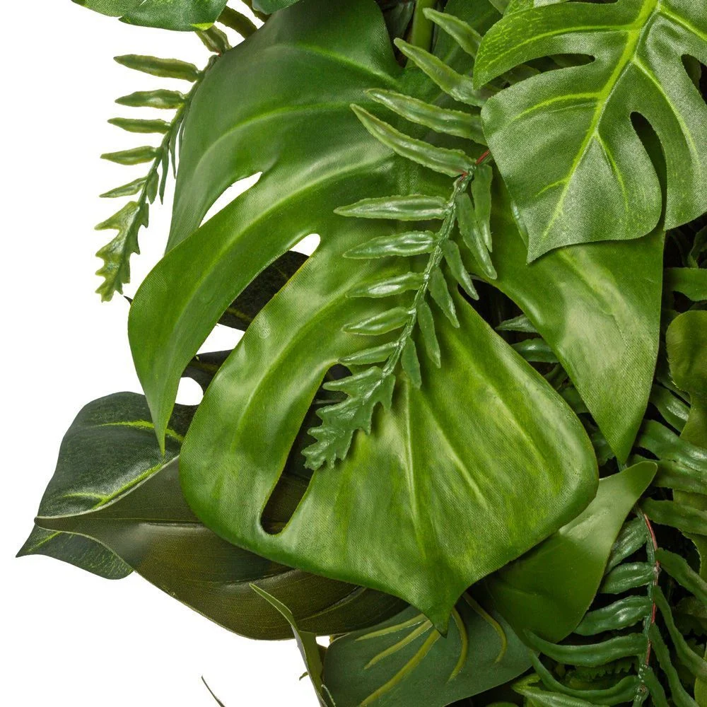 Фитостена, созданная из филодендрона, папоротника и монстеры премиального качества, образует гармоничную композицию, которая станет ярким акцентом в любом интерьере, будь то жилое или коммерческое помещение.