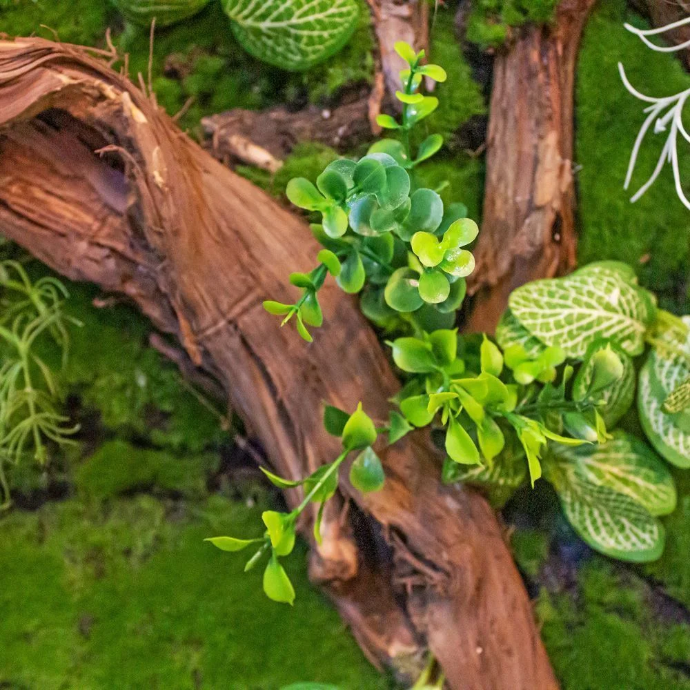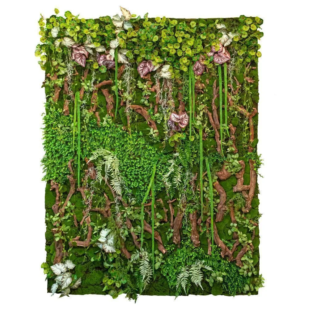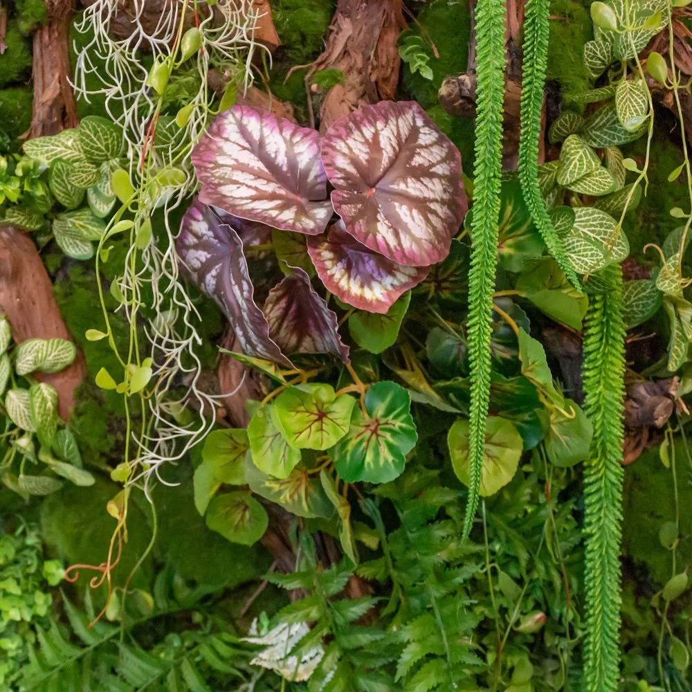 Фитостена, созданная из бегонии, папоротника и веток премиального качества, образует гармоничную композицию, которая станет ярким акцентом в любом интерьере, будь то жилое или коммерческое помещение.