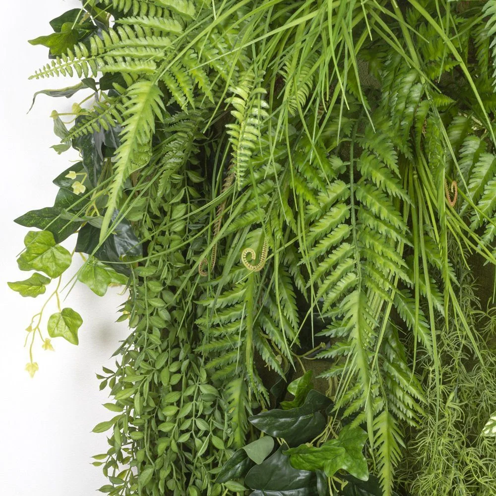 Фитостена, созданная из различных растений и папоротника премиального качества, образует гармоничную композицию, которая станет ярким акцентом в любом интерьере, будь то жилое или коммерческое помещение.