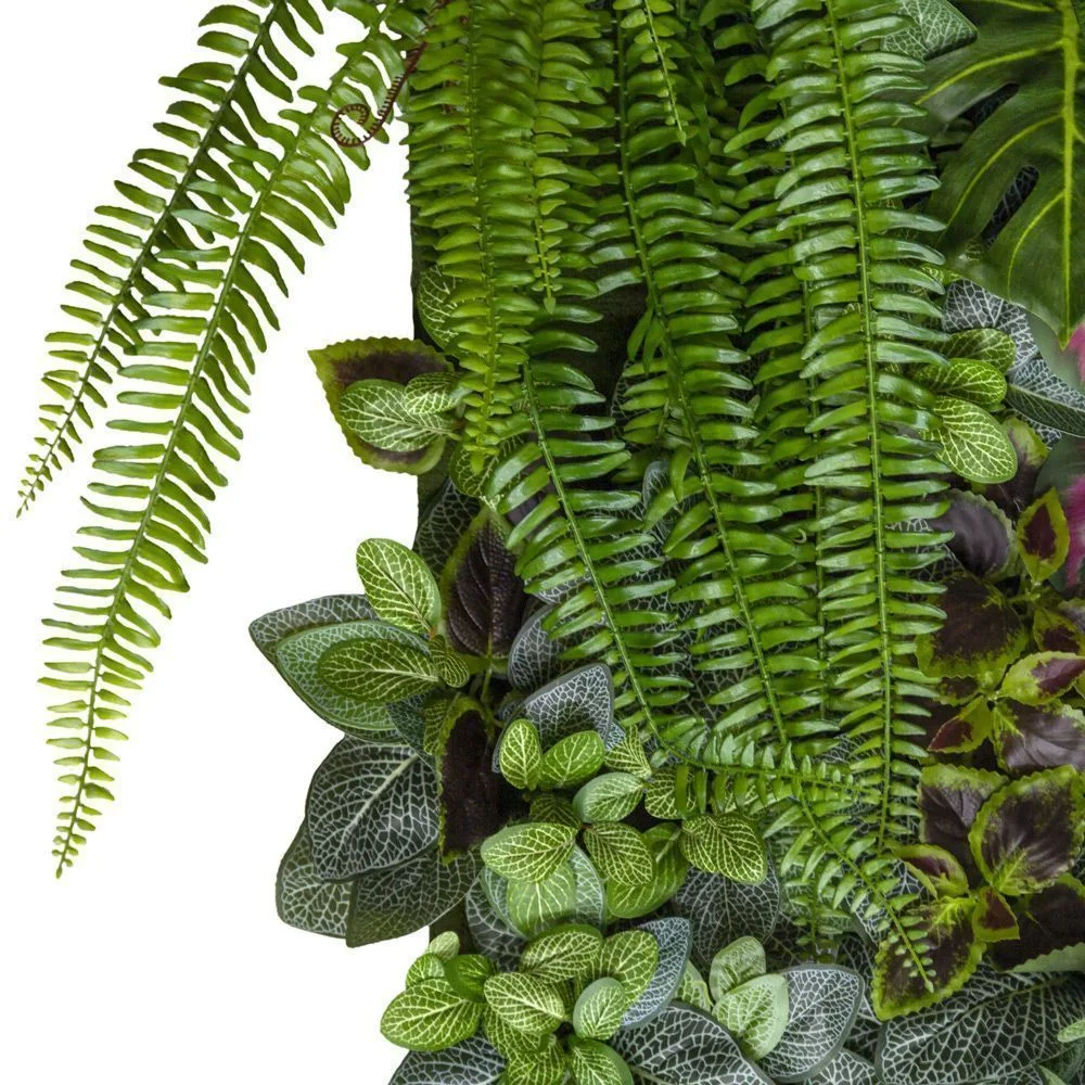 Фитостена, созданная из различных растений и папоротника премиального качества, образует гармоничную композицию, которая станет ярким акцентом в любом интерьере, будь то жилое или коммерческое помещение.