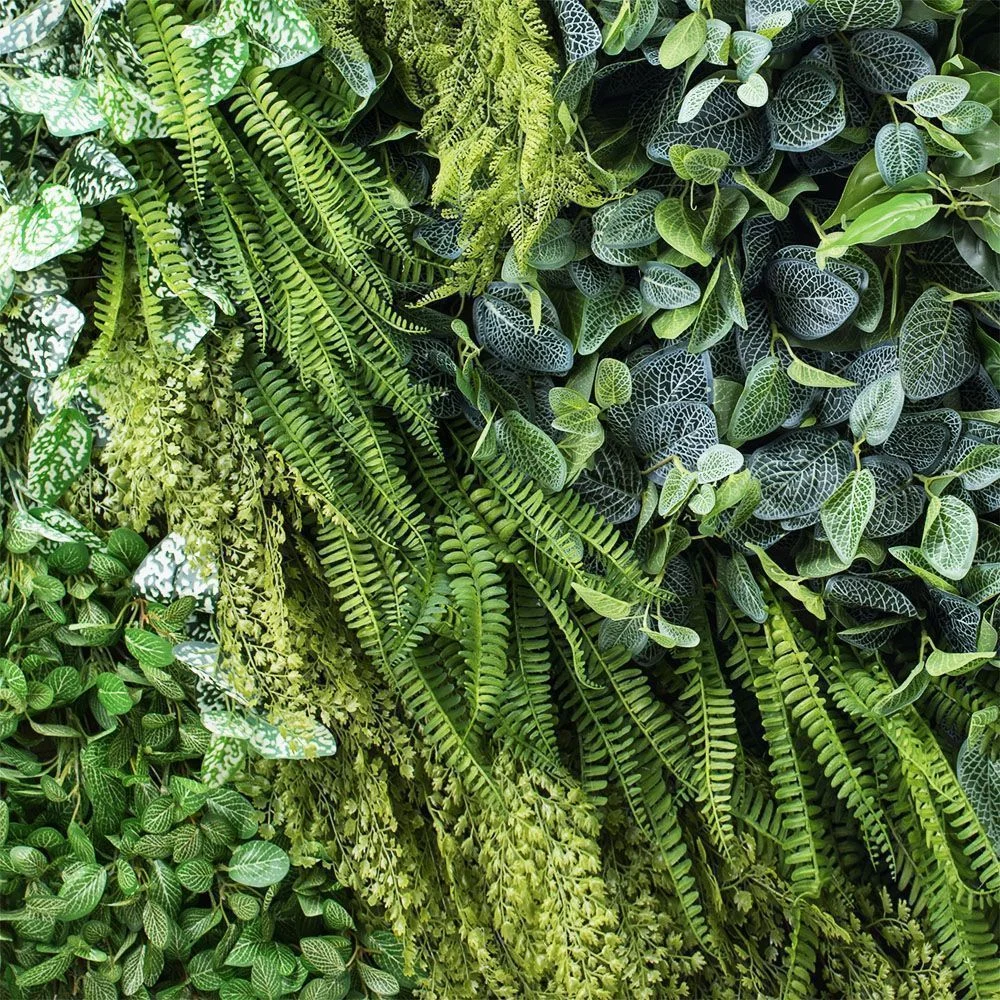 Фитостена, созданная из различных растений и папоротника премиального качества, образует гармоничную композицию, которая станет ярким акцентом в любом интерьере, будь то жилое или коммерческое помещение.