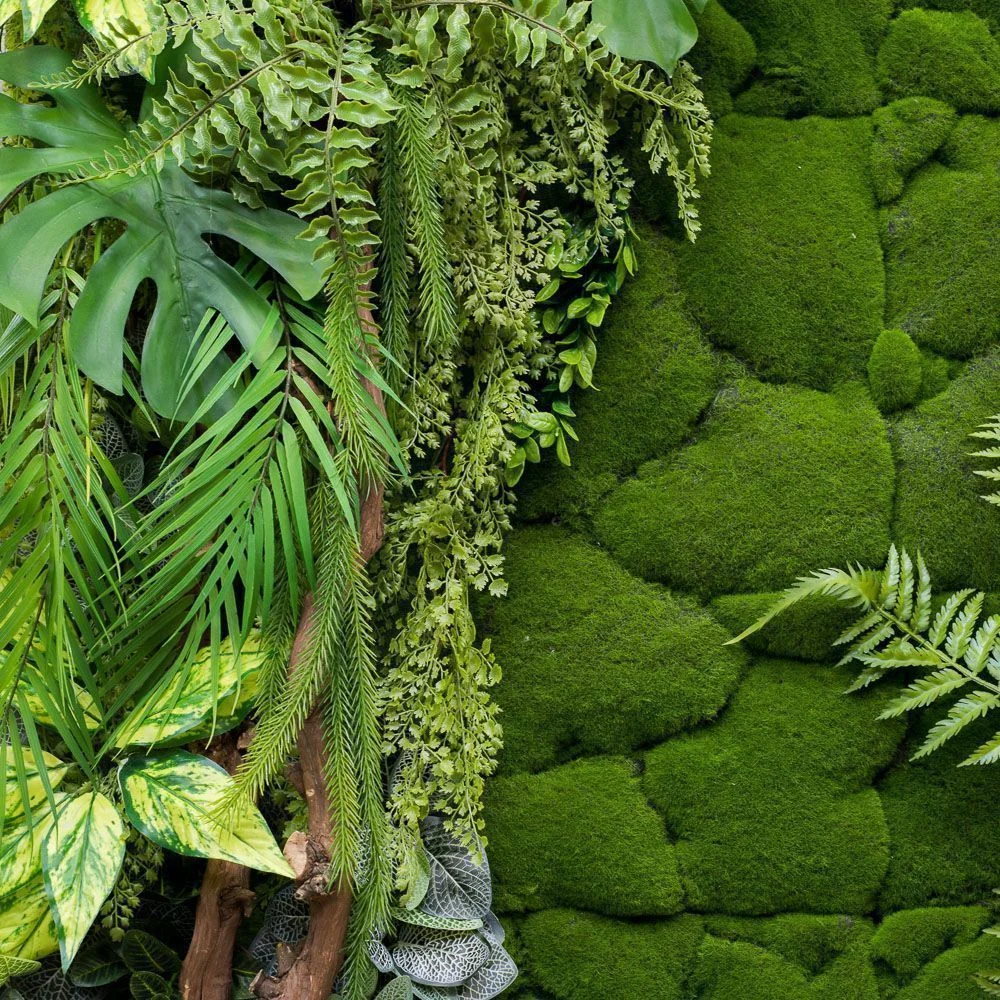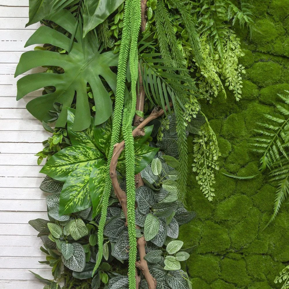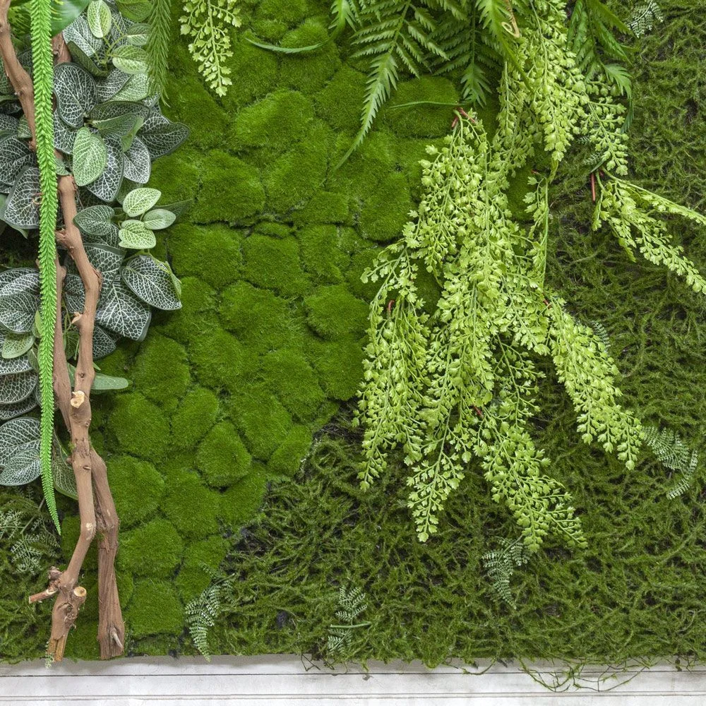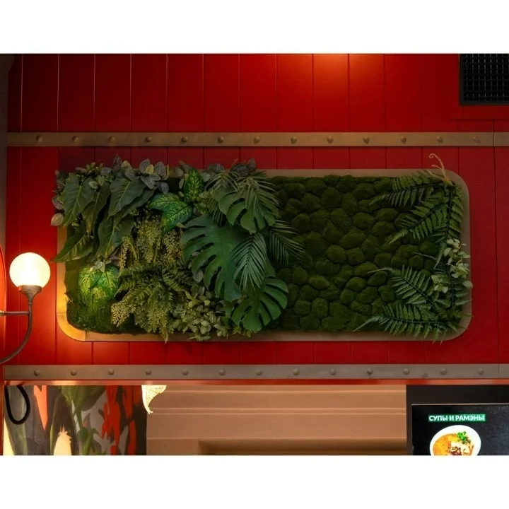 Фитостена, созданная из различных растений и папоротника премиального качества, образует гармоничную композицию, которая станет ярким акцентом в любом интерьере, будь то жилое или коммерческое помещение.