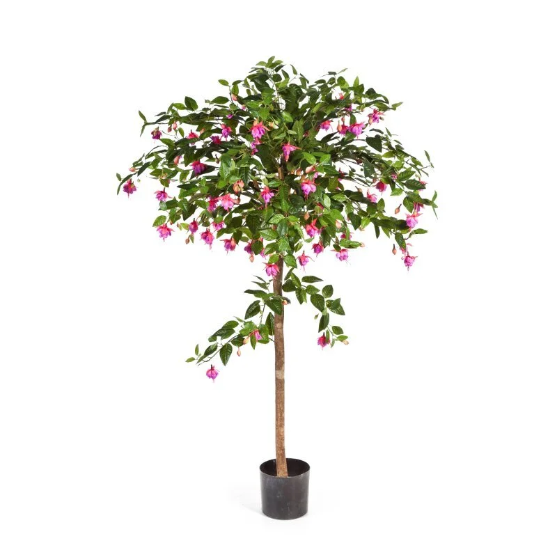 Искусственная фуксия зонтичная украшена пышными розовыми цветами и имеет форму зонтичной кроны.