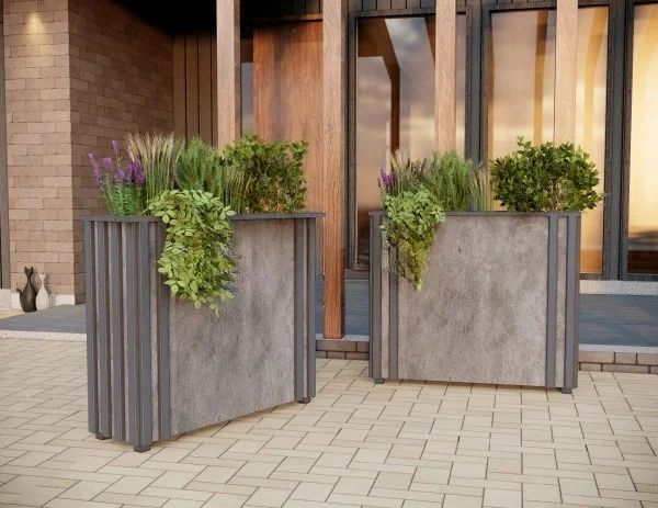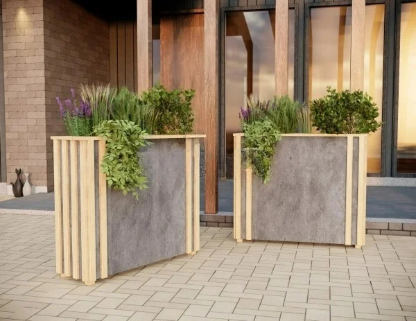 Кадка из дерева реечная прямоугольная с арт-бетоном
