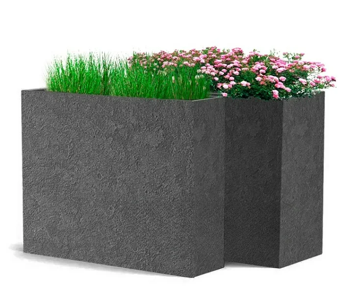 весны до осени (май-октябрь). Кашпо-перегородки покрыты составом универсальной фасадной штукатурки для наружных работ. Кашпо-перегородки снаружи и внутри покрываются несколькими слоями (грунт праймер + грунт кварцевый + фактурная фасадная штукатурка + защитный лак). Финишное покрытие имеет влагостойкие свойства.