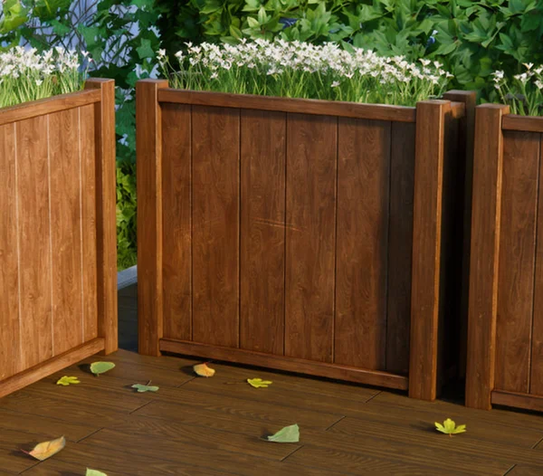 Классическое кашпо прямоугольной формы из натурального дерева будет отличным вариантом для разделения уличного пространства. Вазон пользуется большой популярностью у крупного бизнеса, заведений общественного питания и финансовых учреждений. Кашпо имеет достаточно простой и в то же время оригинальный дизайн.