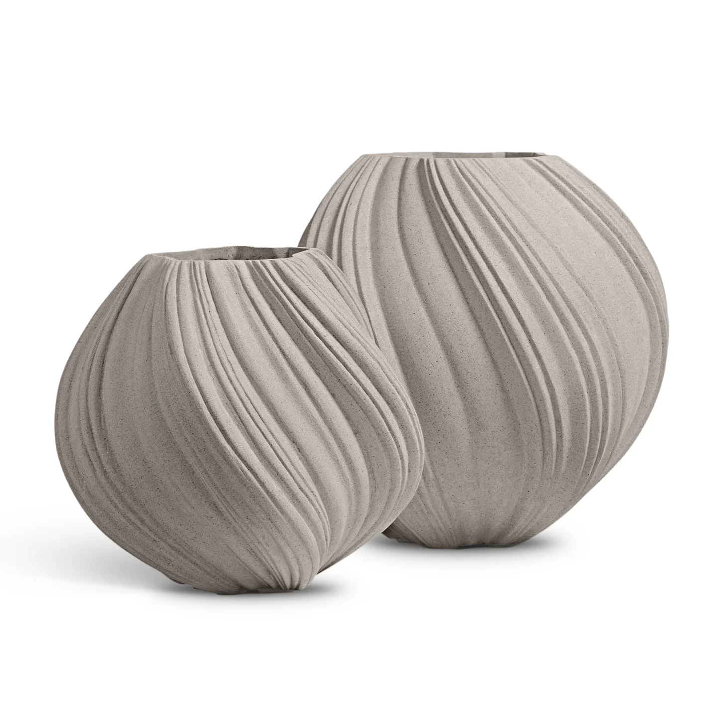 Серия Dune — космическая эстетика в органичных формах. Плавные спиральные линии, напоминающие песчаные барханы, создают эффект поверхности, выточенной ветрами пустыни. Эти кашпо словно переносят в мир футуристических пейзажей.