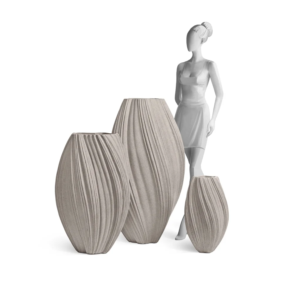 Серия Dune — космическая эстетика в органичных формах. Плавные спиральные линии, напоминающие песчаные барханы, создают эффект поверхности, выточенной ветрами пустыни. Эти кашпо словно переносят в мир футуристических пейзажей.