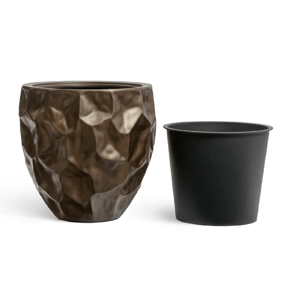 Серия Metal воспроизводит эффект благородного металла. При этом кашпо остаются лёгкими, прочными и устойчивыми к внешним воздействиям, в отличие от хрупких металлических аналогов.