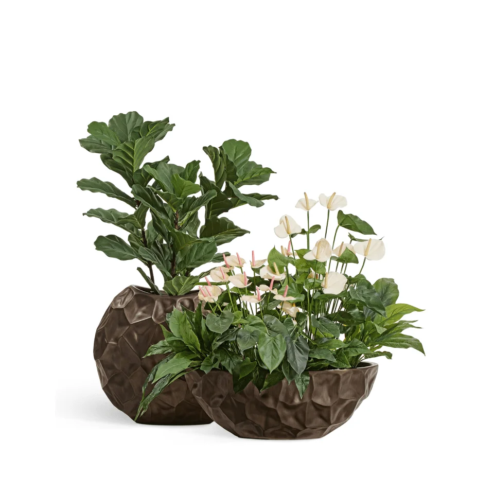 Серия Metal воспроизводит эффект благородного металла. При этом кашпо остаются лёгкими, прочными и устойчивыми к внешним воздействиям, в отличие от хрупких металлических аналогов.