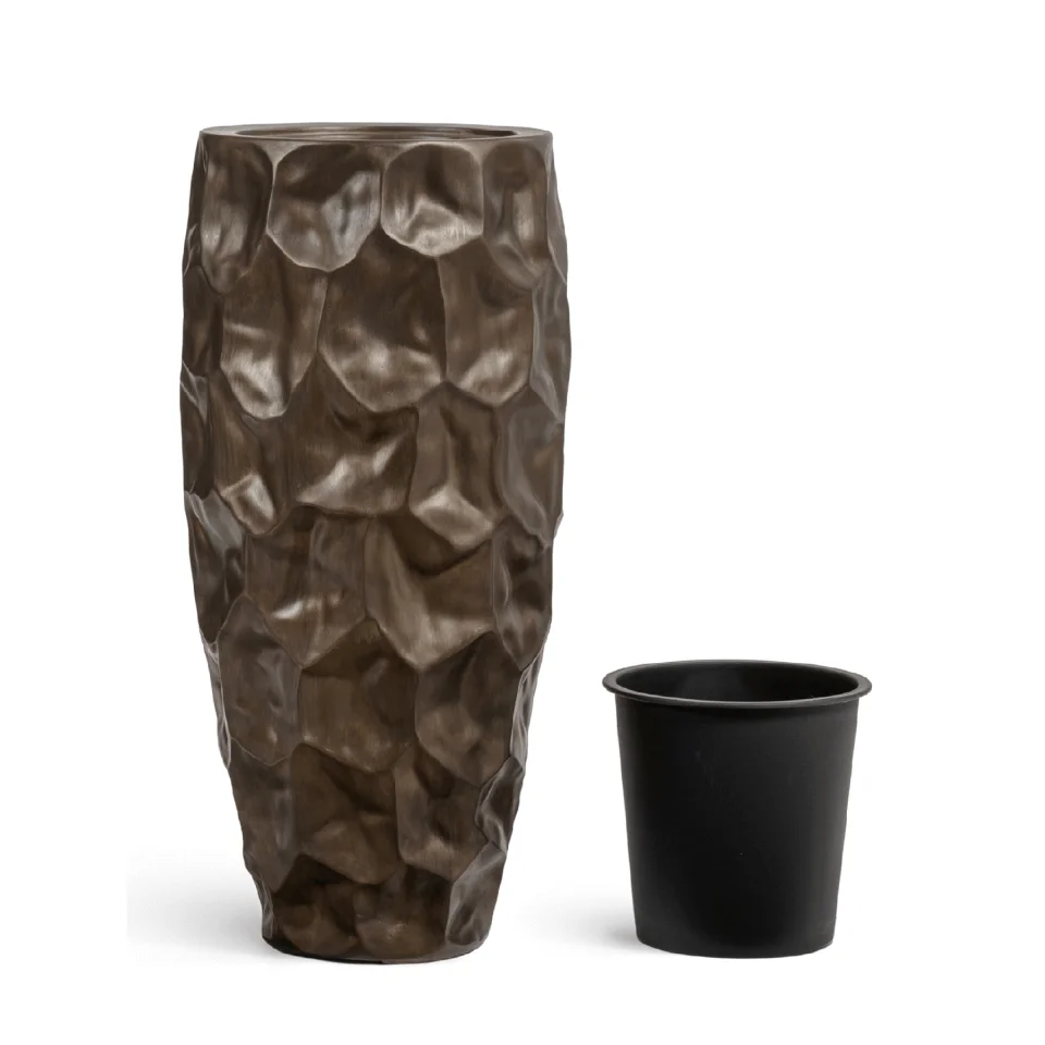 Серия Metal воспроизводит эффект благородного металла. При этом кашпо остаются лёгкими, прочными и устойчивыми к внешним воздействиям, в отличие от хрупких металлических аналогов.