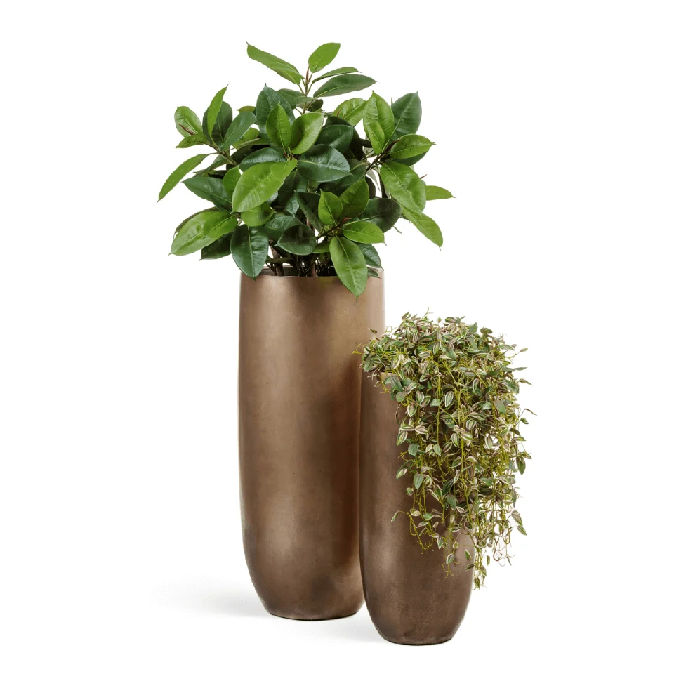 Серия Metal воспроизводит эффект благородного металла. При этом кашпо остаются лёгкими, прочными и устойчивыми к внешним воздействиям, в отличие от хрупких металлических аналогов.