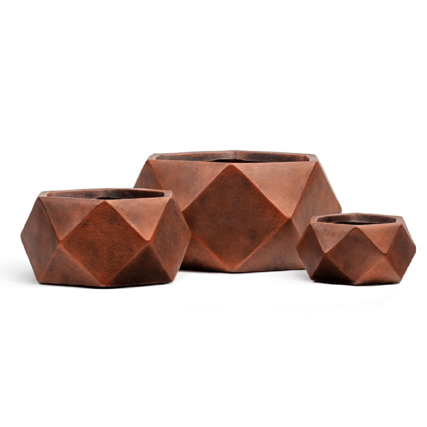 Кашпо TRZ ERGO Rombo Низкая чаша-многогранник Состаренная медь