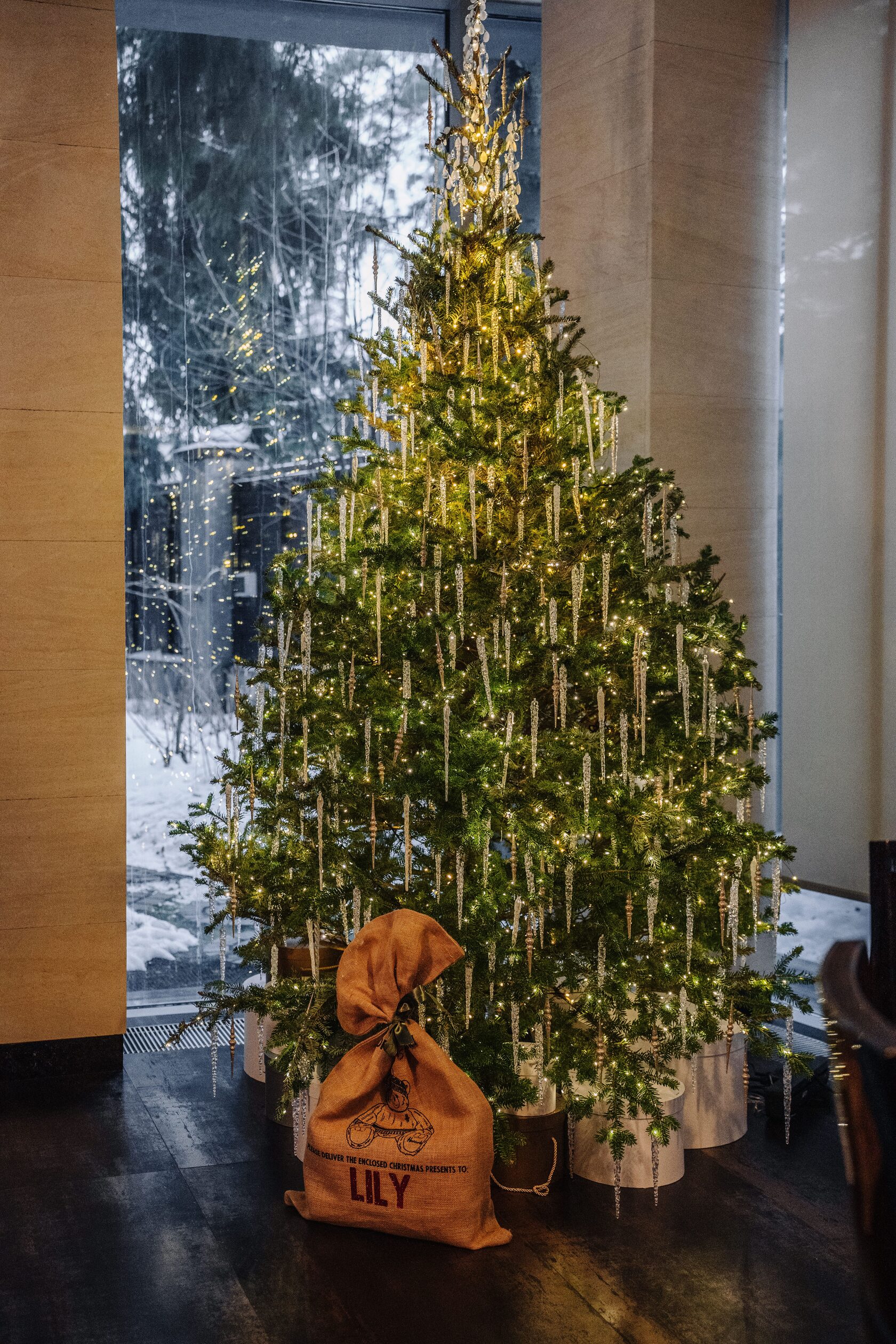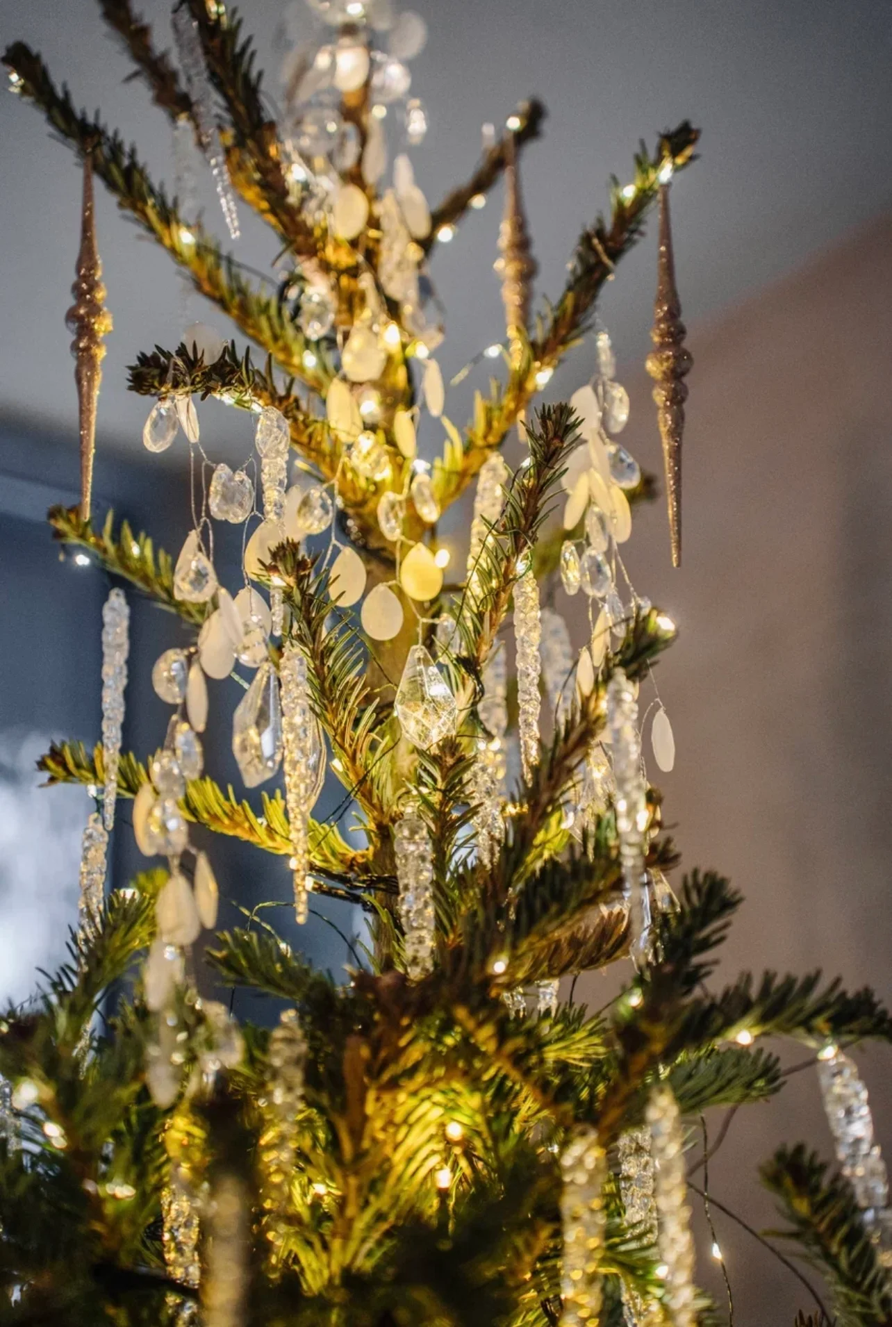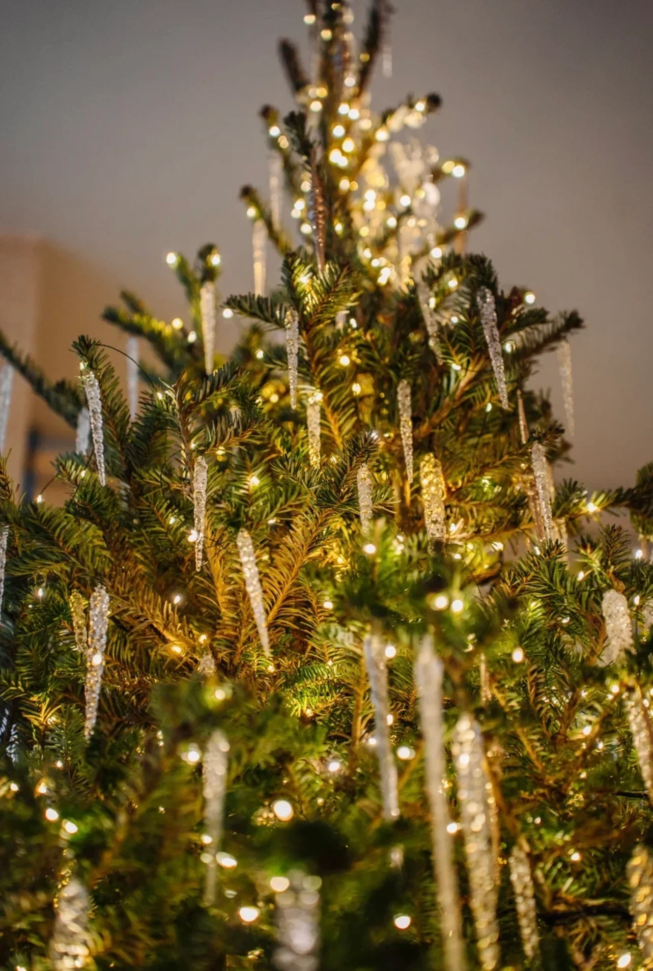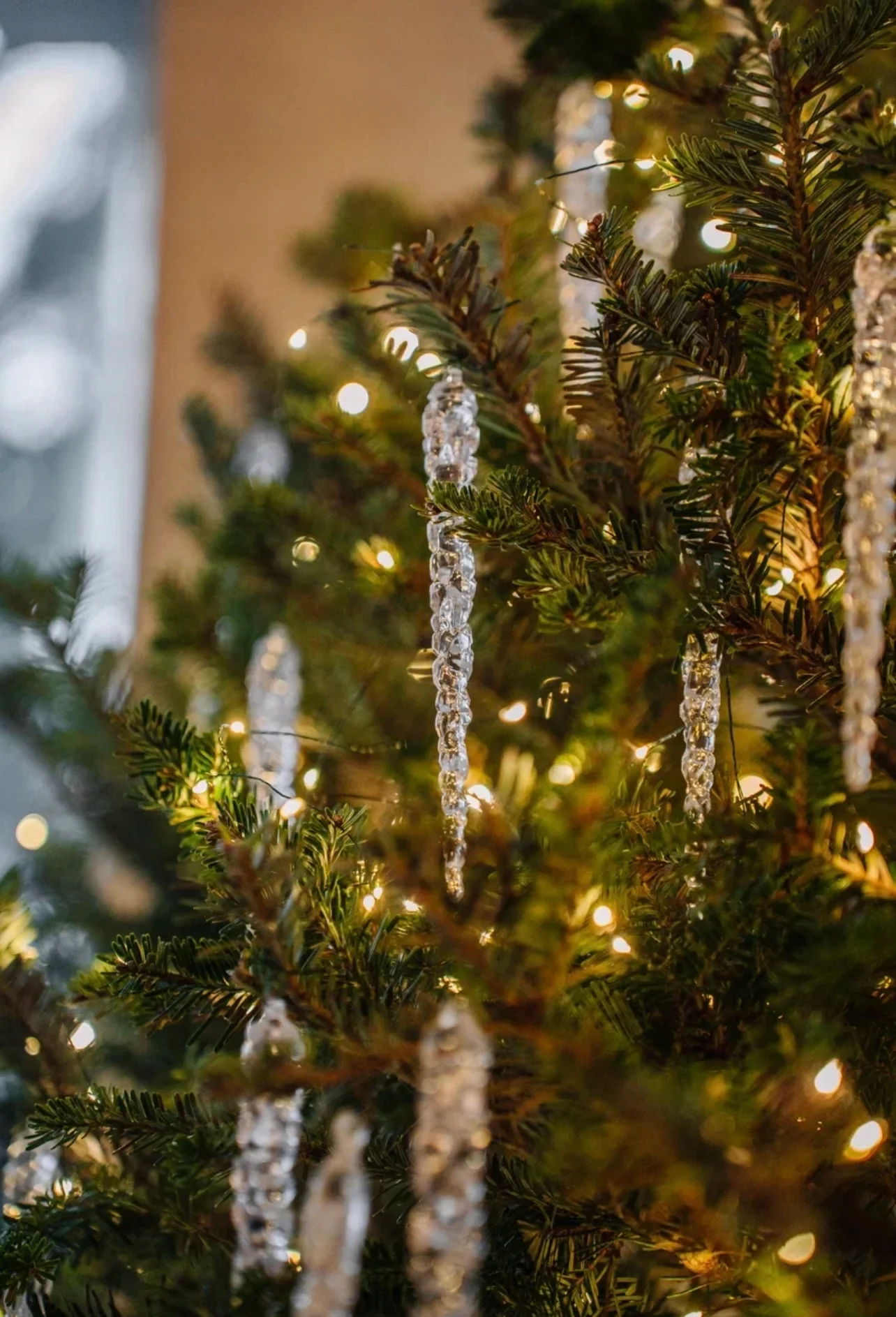 Наши декораторы придумали оригинальное решение для украшения ёлки: они предложили использовать акриловые сосульки. Этот выбор придал атмосфере волшебства и таинственности, сделав ёлку похожей на сказочный лес.