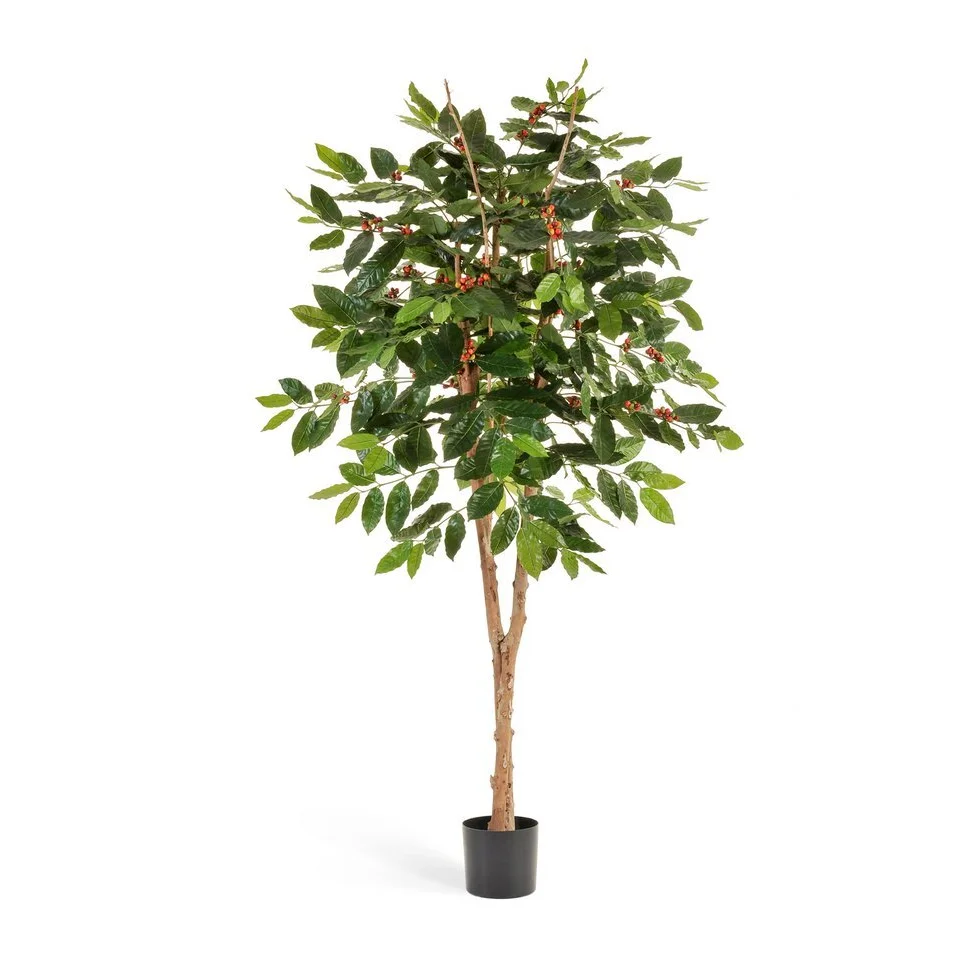Кофейное дерево с маленькими зелеными плодами имеет округлую форму, точно повторяя живое растение и не требуя особого ухода.