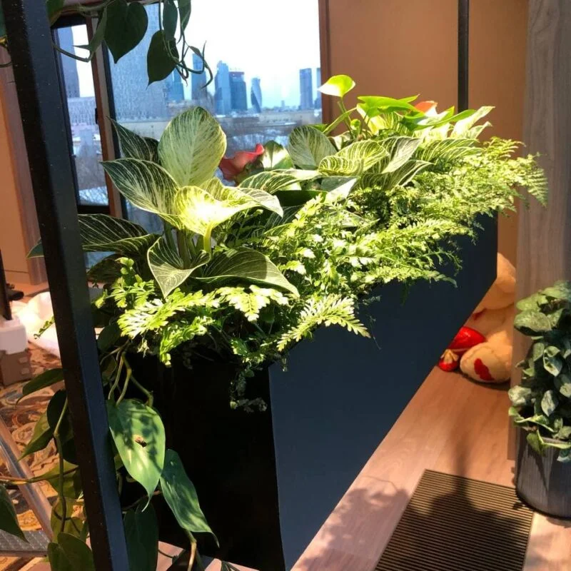 - Долговечность: сочетание неприхотливых живых растений с вечными искусственными