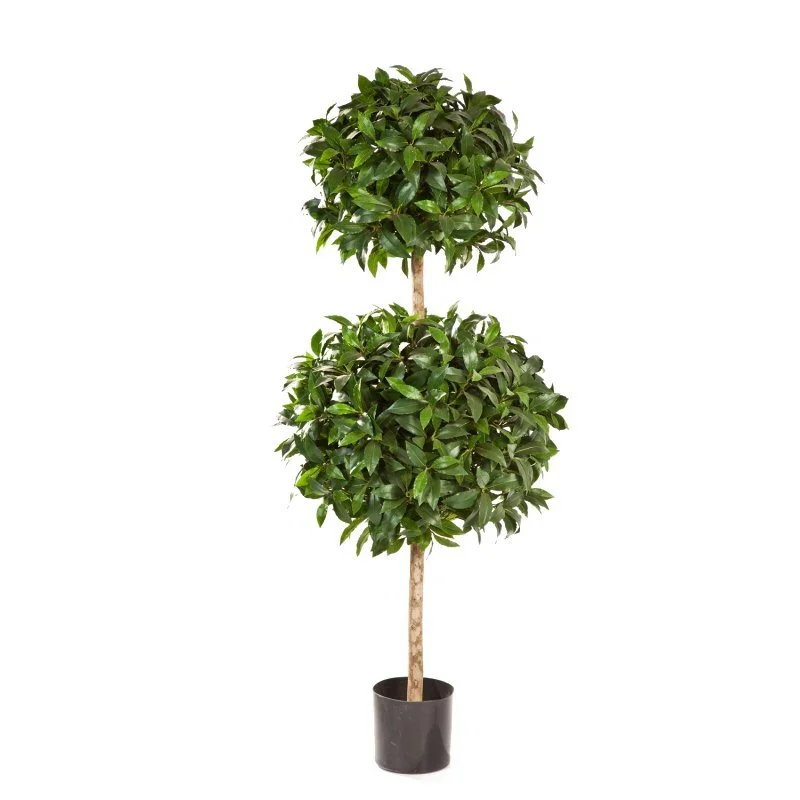Лавр шаровидный двойной де люкс выглядит естественно благодаря насыщенному зеленому цвету и детально проработанным жилкам на листьях.