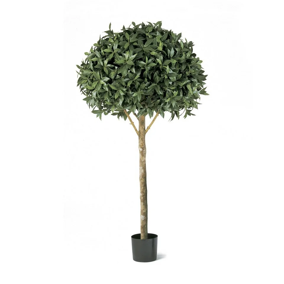 Лавр Шар Максима — это дерево с пышной округлой кроной на штамбе. Классические темно-зеленые листья расположены пучками.