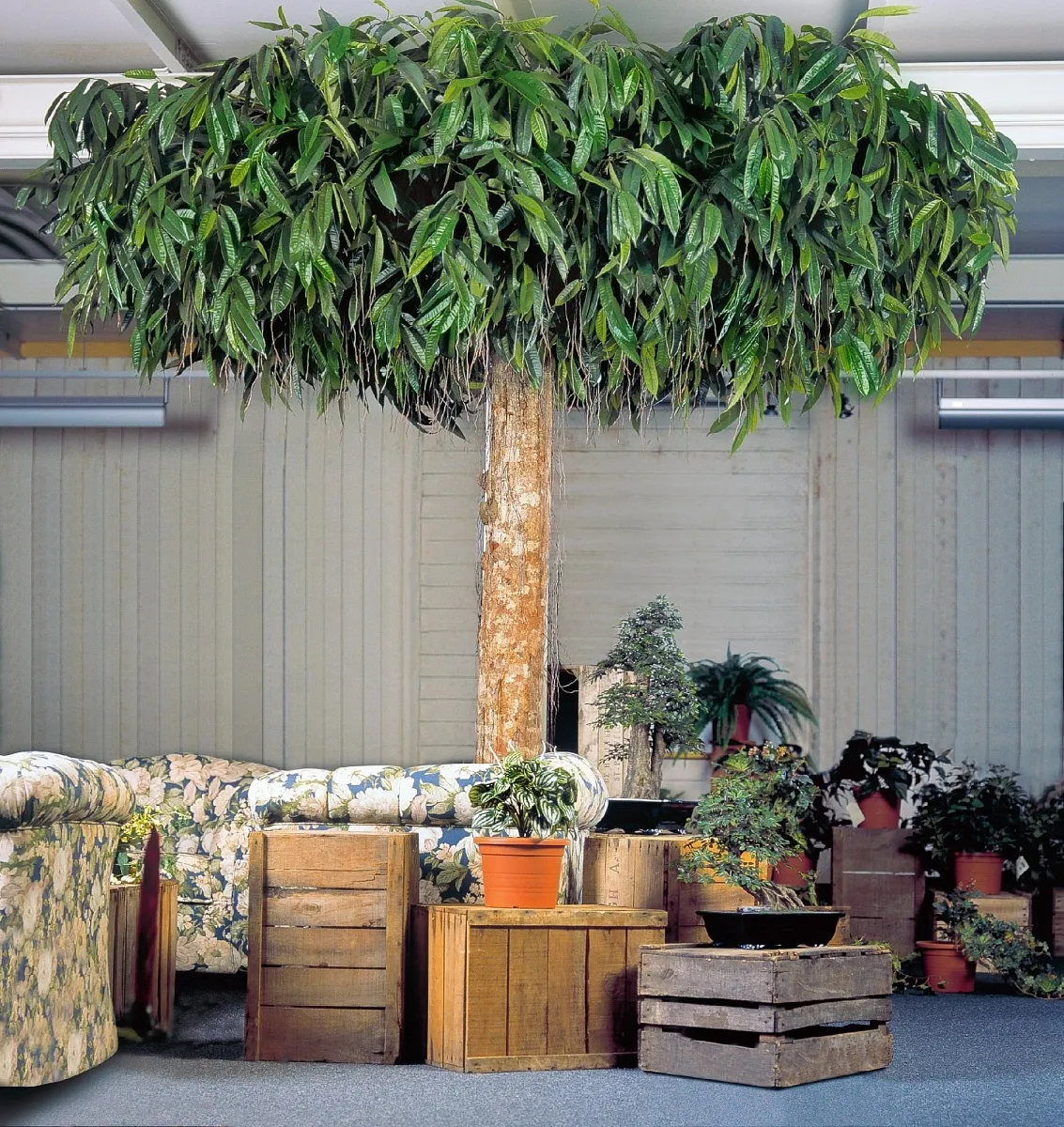 Лонгифолия Плаза — это интерьерная модель с пышной кроной и высоким ростом, листья хорошо держат форму и выглядят как настоящие.