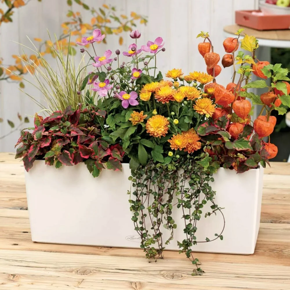 Кашпо BALCONERA – немецкое кашпо с системой автополива, которое вы можете закрепить на перилах балкона или террасы, а также поставить на стол или подоконник. Кашпо обладает поверхностью с фактурой “под камень”, сделано из высококачественного ударопрочного пластика, который не пахнет и не выгорает. Кашпо защищено от перелива дождевой воды.