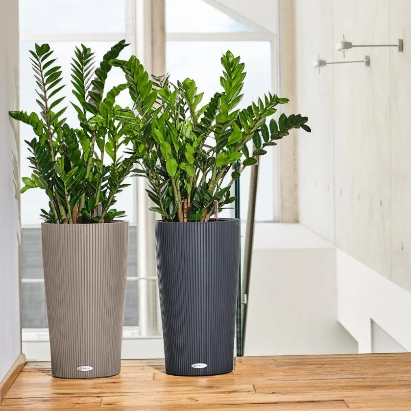 LZA CILINDRO – напольное кашпо с системой автополива, с помощью которого вы сможете эффектно дополнить интерьер или пространство на улице. Цветочные горшки LZA изготавливаются в Германии. Кашпо имеет матовую шелковистую поверхность с вертикальными ребрами.