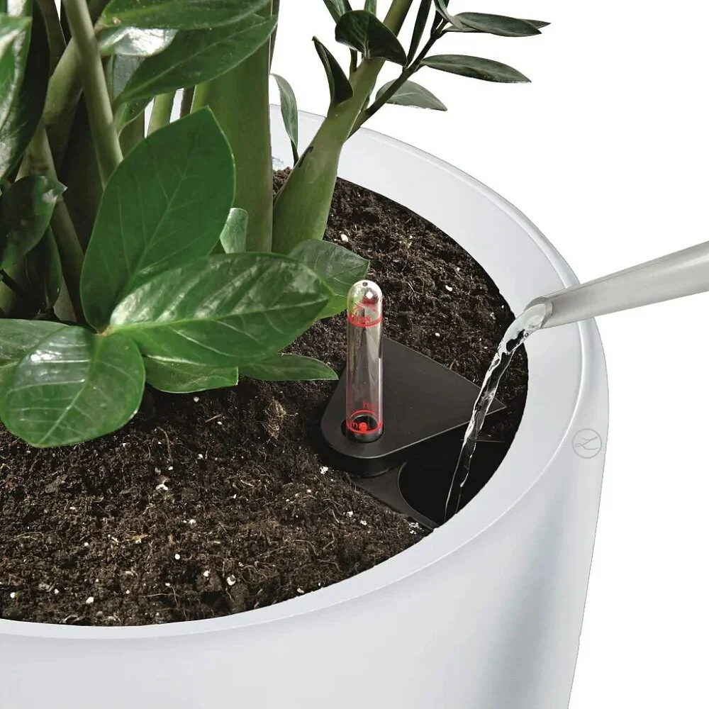 LZA CLASSICO LS – кашпо с системой автополива, с помощью которого вы сможете эффектно дополнить интерьер или пространство на улице. LZA изготавливаются в Германии. Кашпо имеет гладкую лакированную поверхность из высококачественного ударопрочного пластика, который не пахнет и не выгорает. Кашпо защищено от перелива дождевой воды.