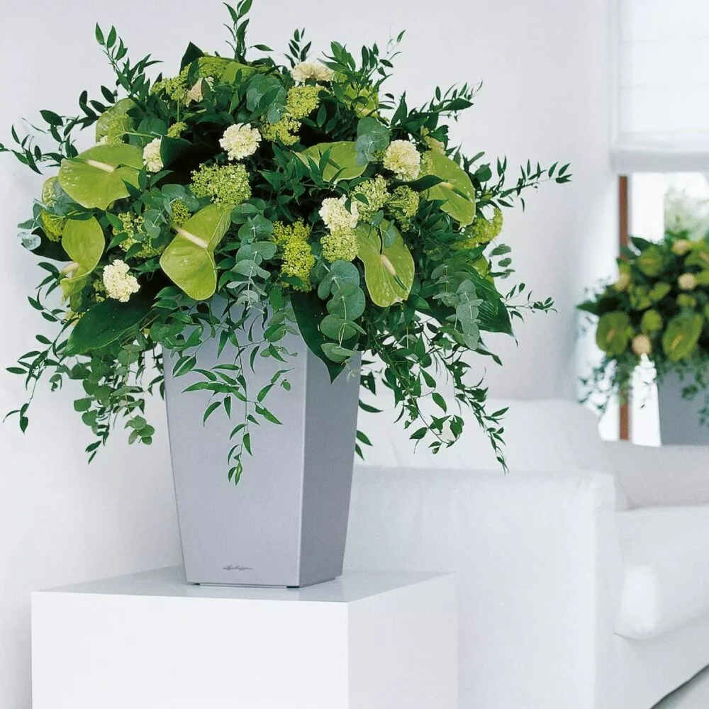 LZA CUBICO – напольное кашпо с системой автополива, с помощью которого вы сможете эффектно дополнить интерьер или пространство на улице. Кашпо изготавливаются в Германии. Кашпо имеет гладкую лакированную поверхность из высококачественного ударопрочного пластика, который не пахнет и не выгорает. Кашпо не боится перепадов температур и защищено от перелива дождевой воды.