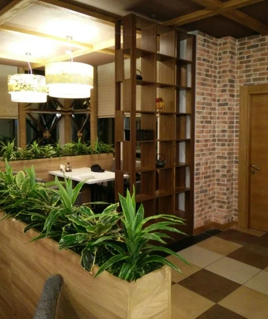 Зеленые композиции из разных видов растений не только освежают, но и зонируют пространство. С помощью искусственного озеленения можно легко разбавить интерьер яркими и сочными красками.