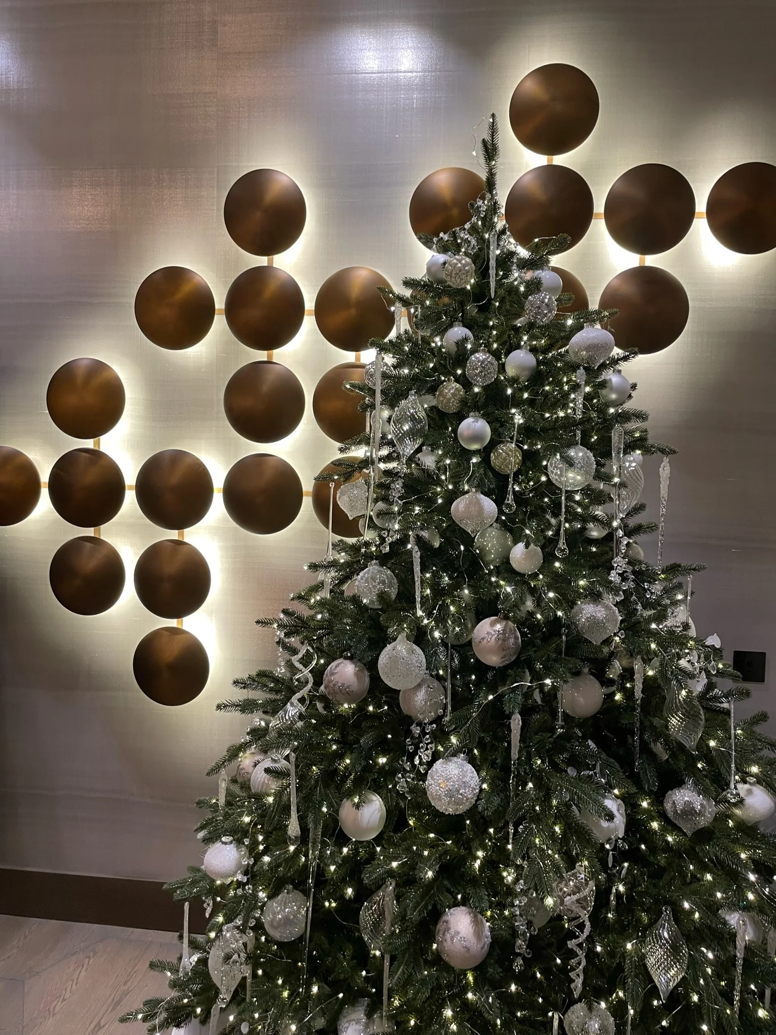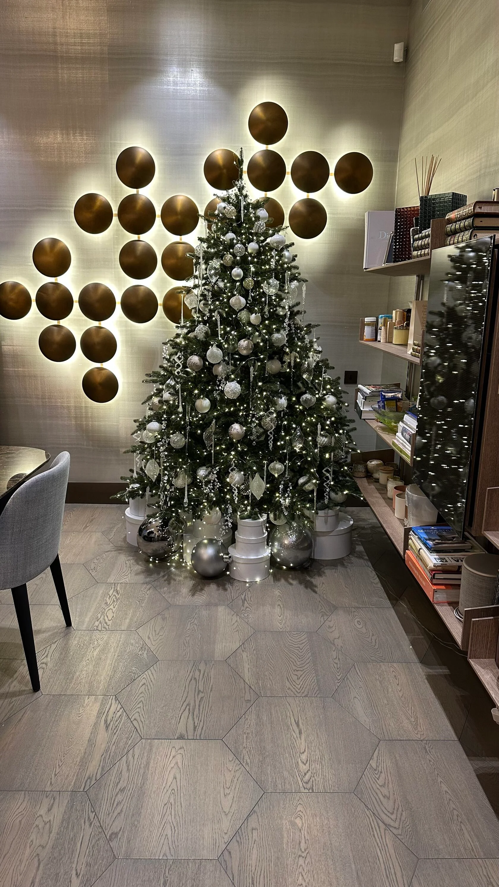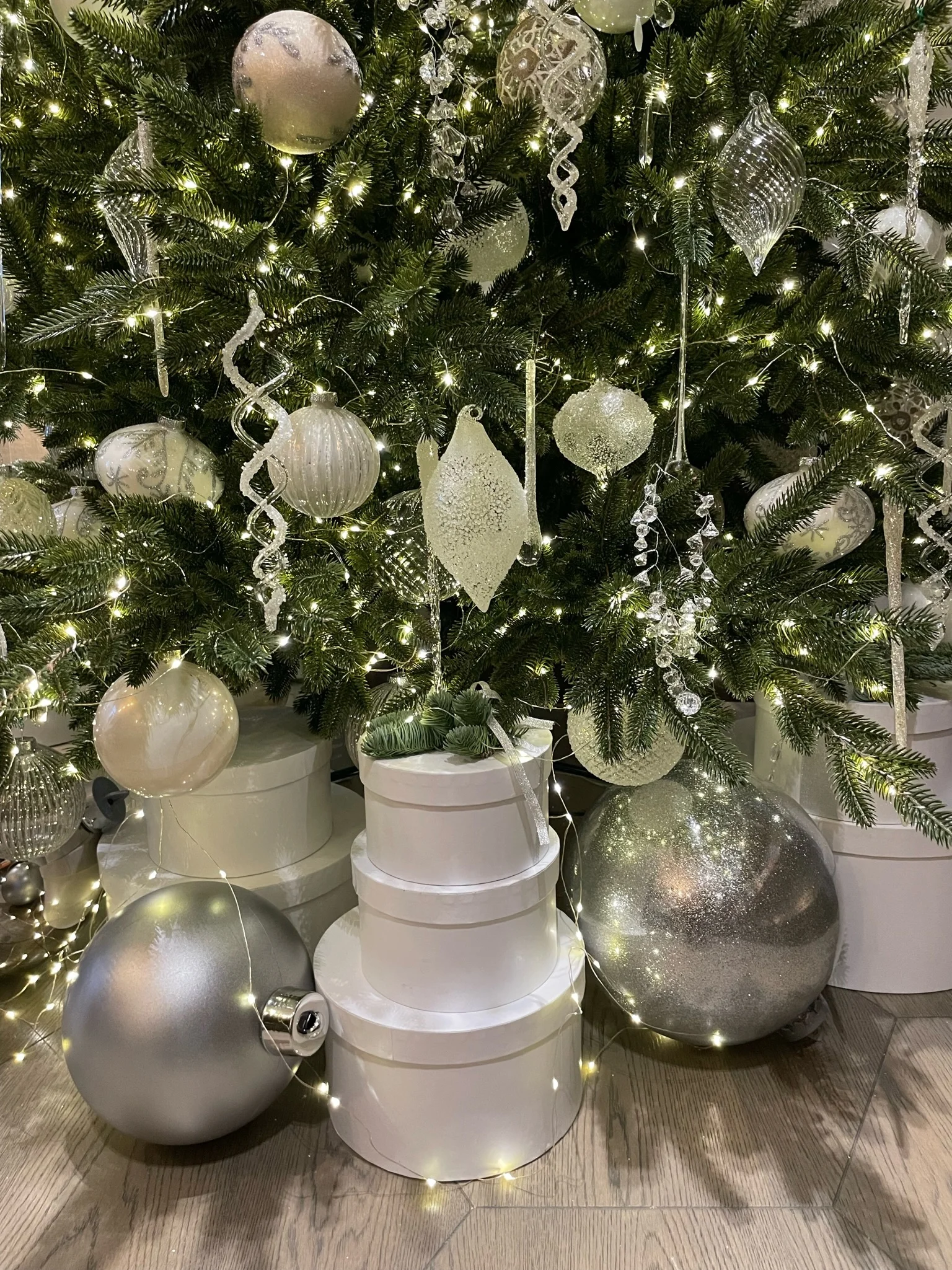 В рамках проекта мы нарядили елку по заранее разработанной концепции. Подбрали изящные игрушки и гирлянды, чтобы елка выглядела празднично.
