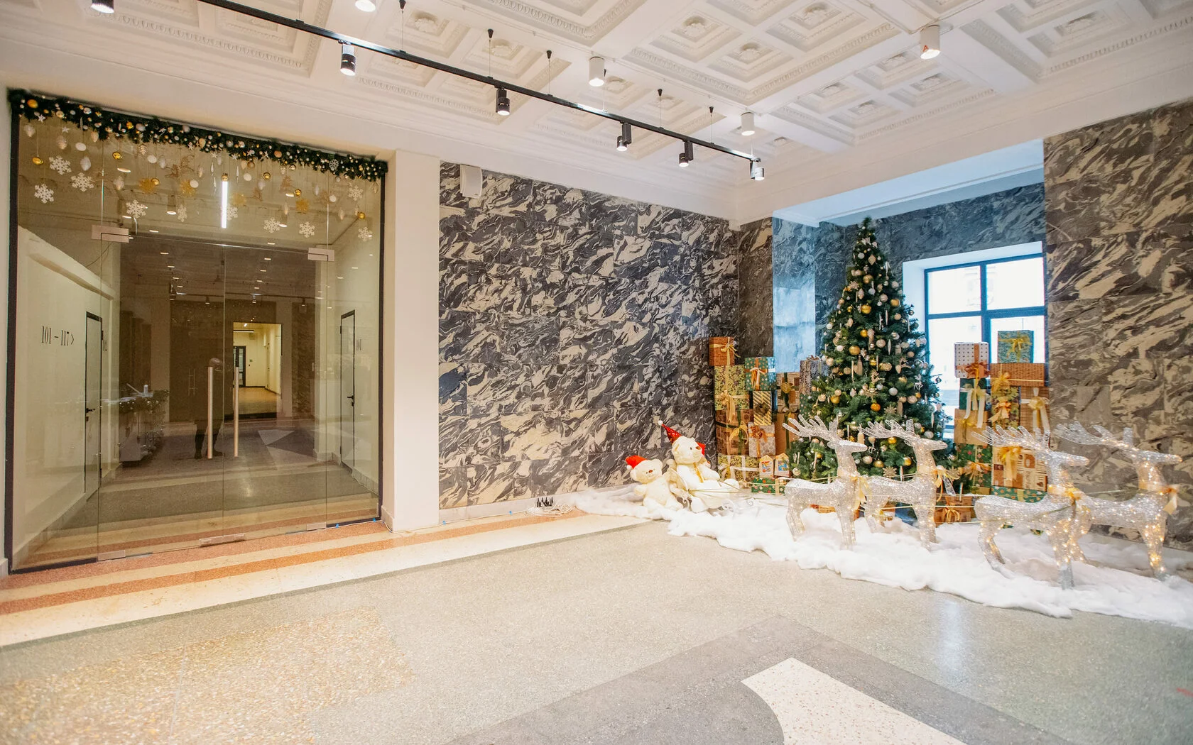 Мы создали фотозону с елкой, оленями и медведями и украсили ресепшн и лестницу. Атмосфера праздника радовала посетителей, оставляя у них приятные воспоминания.