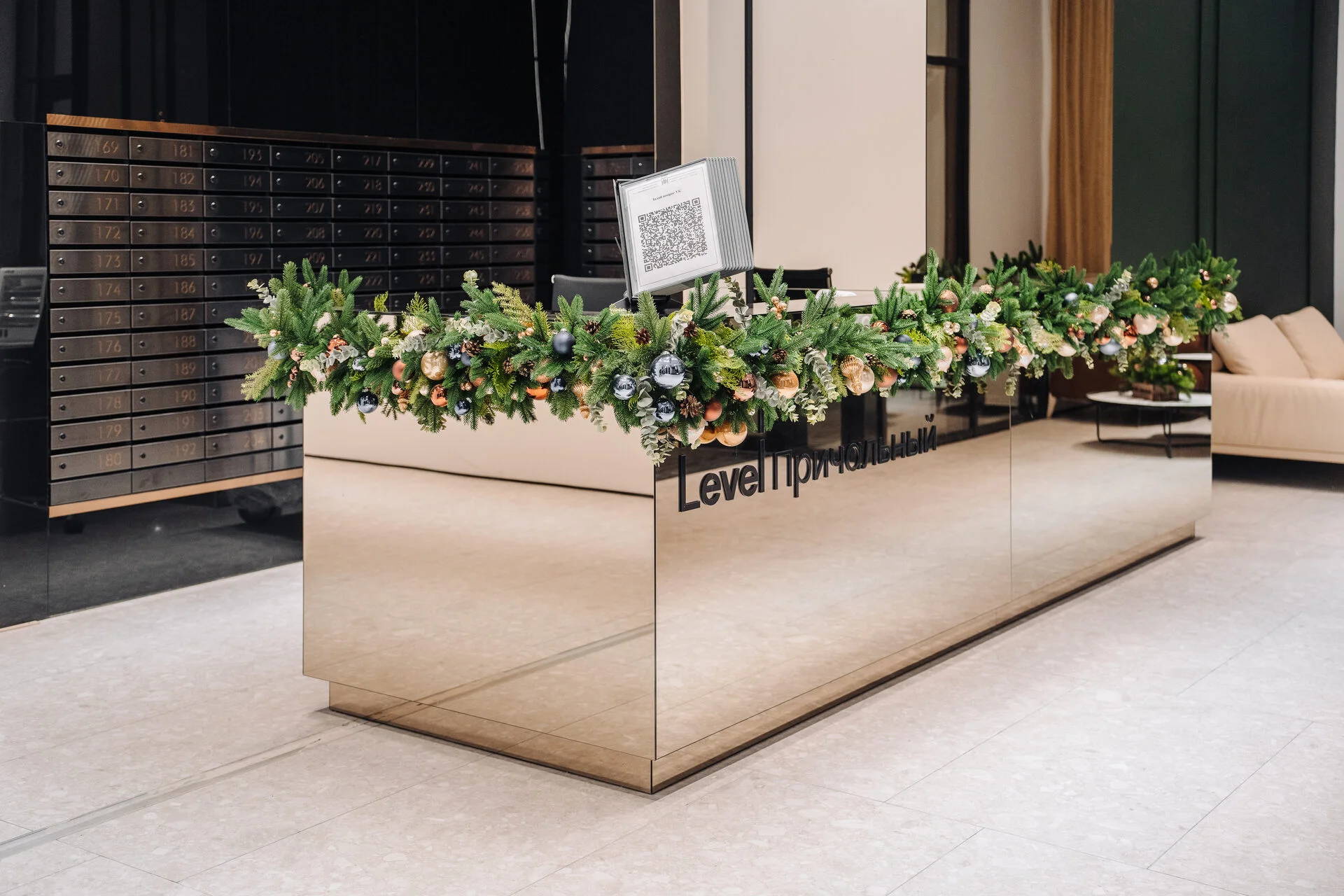 Создать новогоднее оформление офисов продаж агентства недвижимости — задача, требующая особого внимания к деталям. Важно, чтобы декор соответствовал высоким стандартам бренда. Основные требования: соблюдение корпоративной цветовой гаммы, использование качественных материалов и создание праздничной атмосферы, которая подчеркнёт имидж компании.