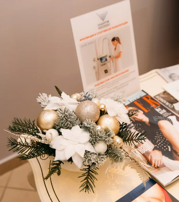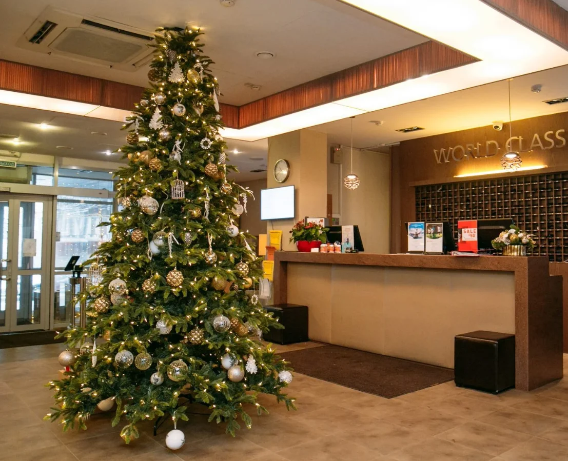 В новогоднем оформлении фитнес-клуба необходимо было создать праздничный декор с использованием продукции премиум-класса.