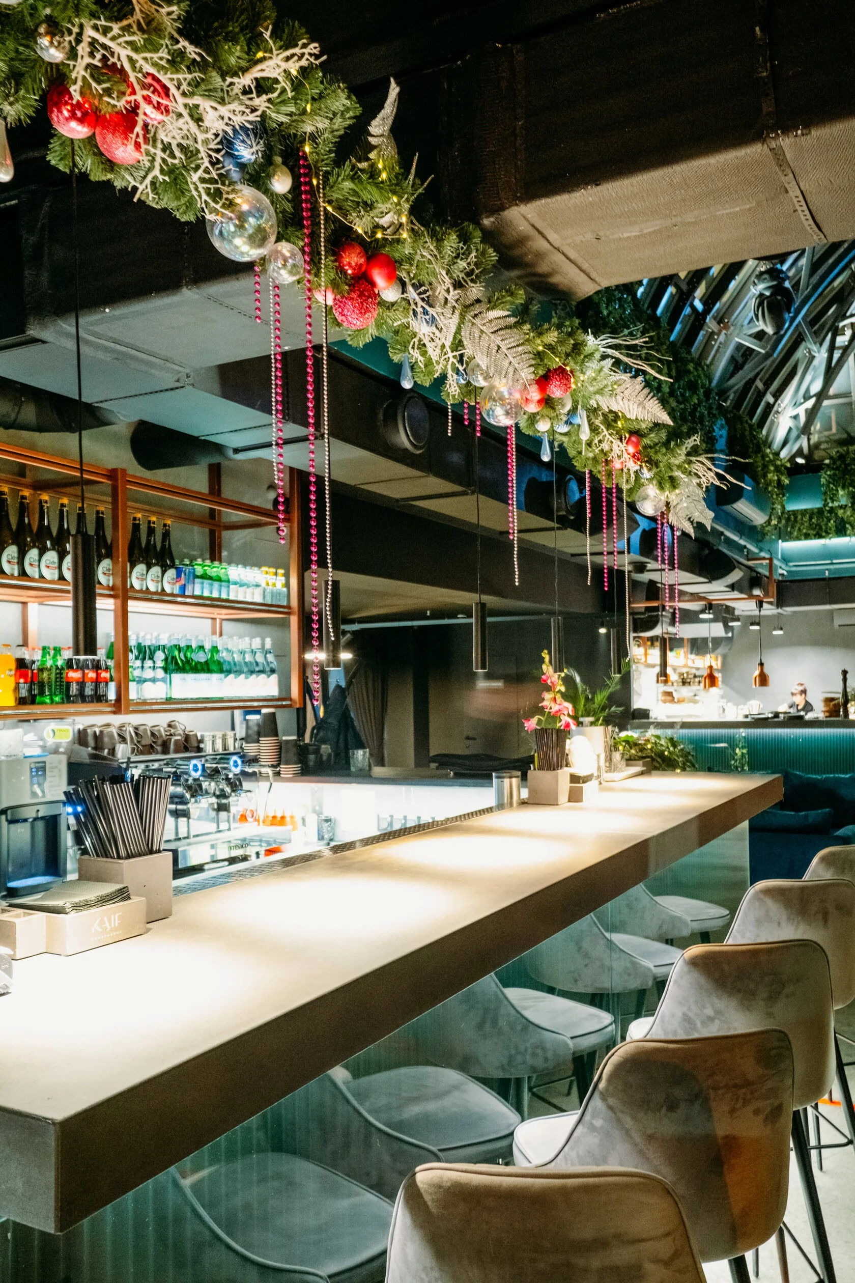 Перед командой специалистов была поставлена задача индивидуальную новогоднюю концепцию, подчеркнув статусность ресторана.