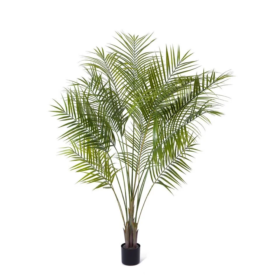 Искусственная пальма Арека — популярный выбор для интерьера и экстерьера. Она защищена от ультрафиолета и состоит из отдельных элементов с естественной кроной на тонких стволах.
