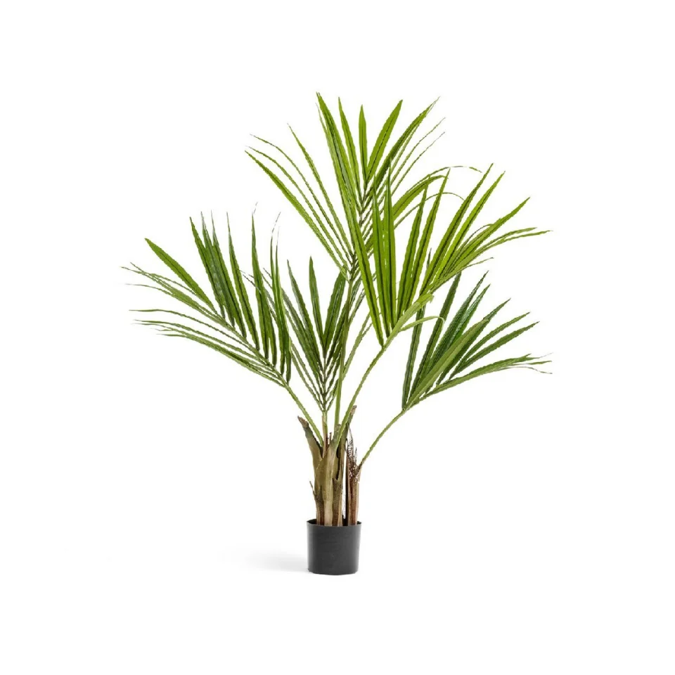 Искусственная пальма Арека — популярный выбор для интерьера и экстерьера. Она защищена от ультрафиолета и состоит из отдельных элементов с естественной кроной на тонких стволах.